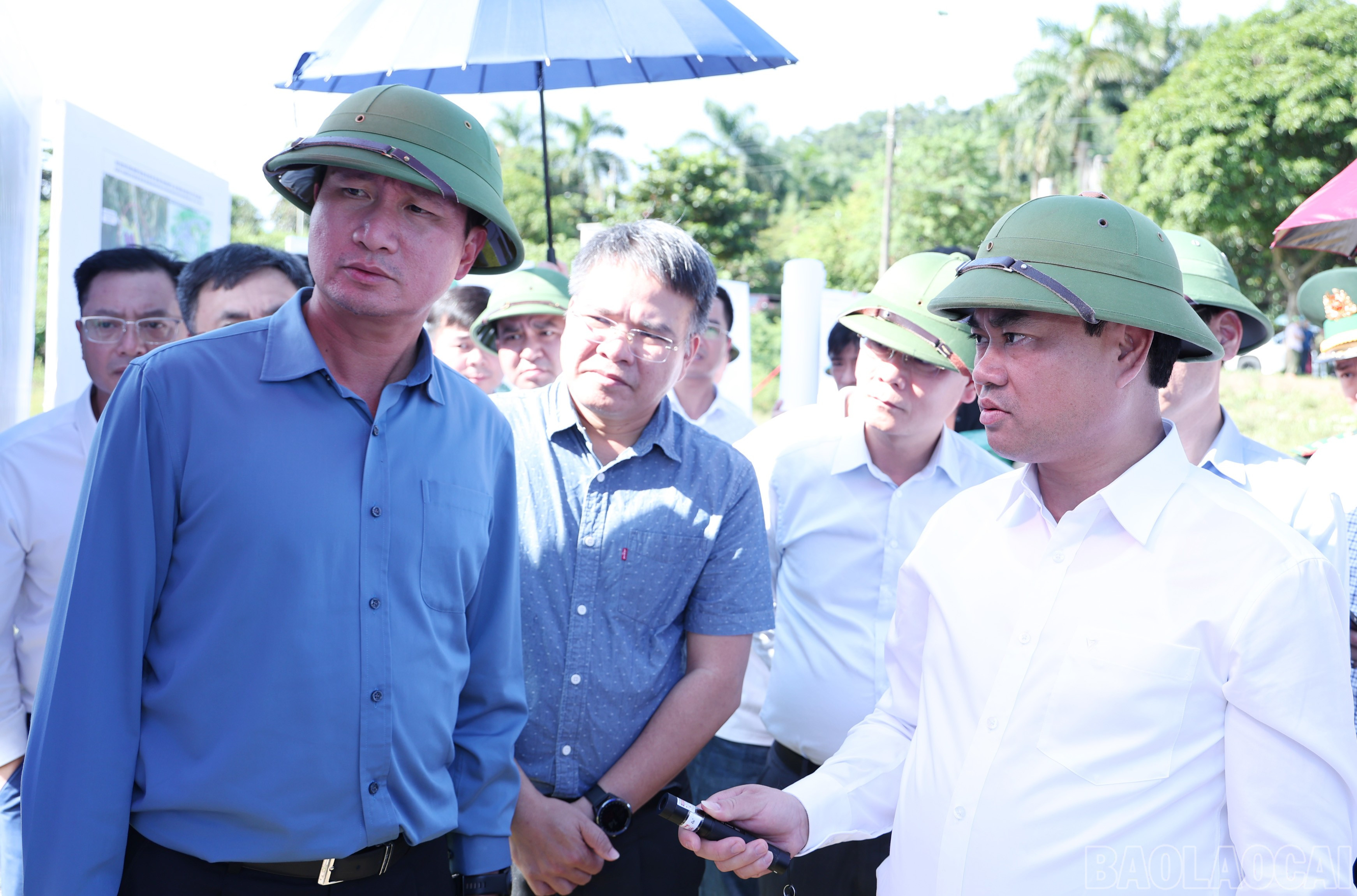Cùng đi có các đồng chí: Hoàng Giang - Phó Bí thư Thường trực Tỉnh ủy; Trần Huy Tuấn - Phó Bí thư Tỉnh ủy, Chủ tịch UBND tỉnh; Giàng Thị Dung - Phó Bí thư Tỉnh ủy, Chủ tịch Ủy ban MTTQ Việt Nam tỉnh Lào Cai; các đồng chí Thường trực UBND tỉnh, Giám đốc Công an tỉnh, Chỉ huy trưởng Bộ Chỉ huy Quân sự tỉnh và lãnh đạo một số sở, ngành...