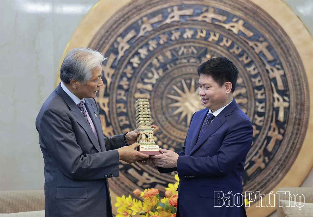 Tại buổi tiếp, Bí thư Tỉnh ủy Trương Quốc Huy đã thông tin khái quát về tình hình phát triển kinh tế - xã hội của tỉnh Phú Thọ sau khi sáp nhập. Với vị trí địa lý thuận lợi cùng nhiều tiềm năng, lợi thế sẵn có, Phú Thọ đang là điểm đến hấp dẫn của nhiều nhà đầu tư quốc tế.