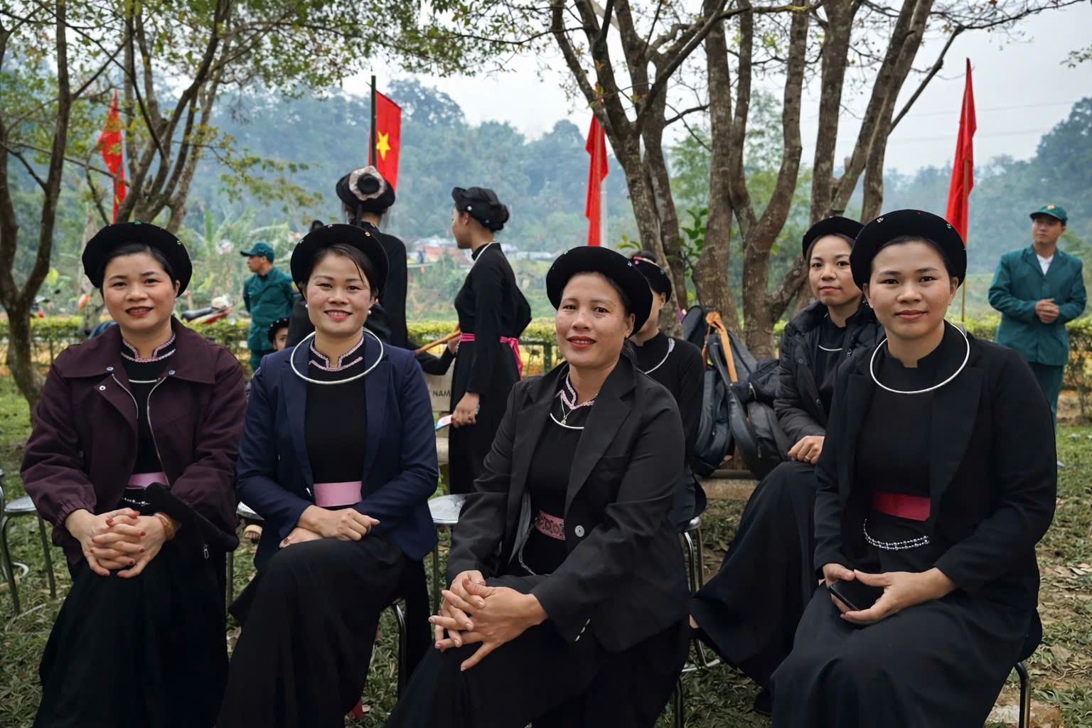 Tờ mờ sáng, khi sương còn giăng kín bản làng, đông đảo cử tri xã Tân Trào đã nô nức có mặt tại điểm bỏ phiếu trong trang phục truyền thống.