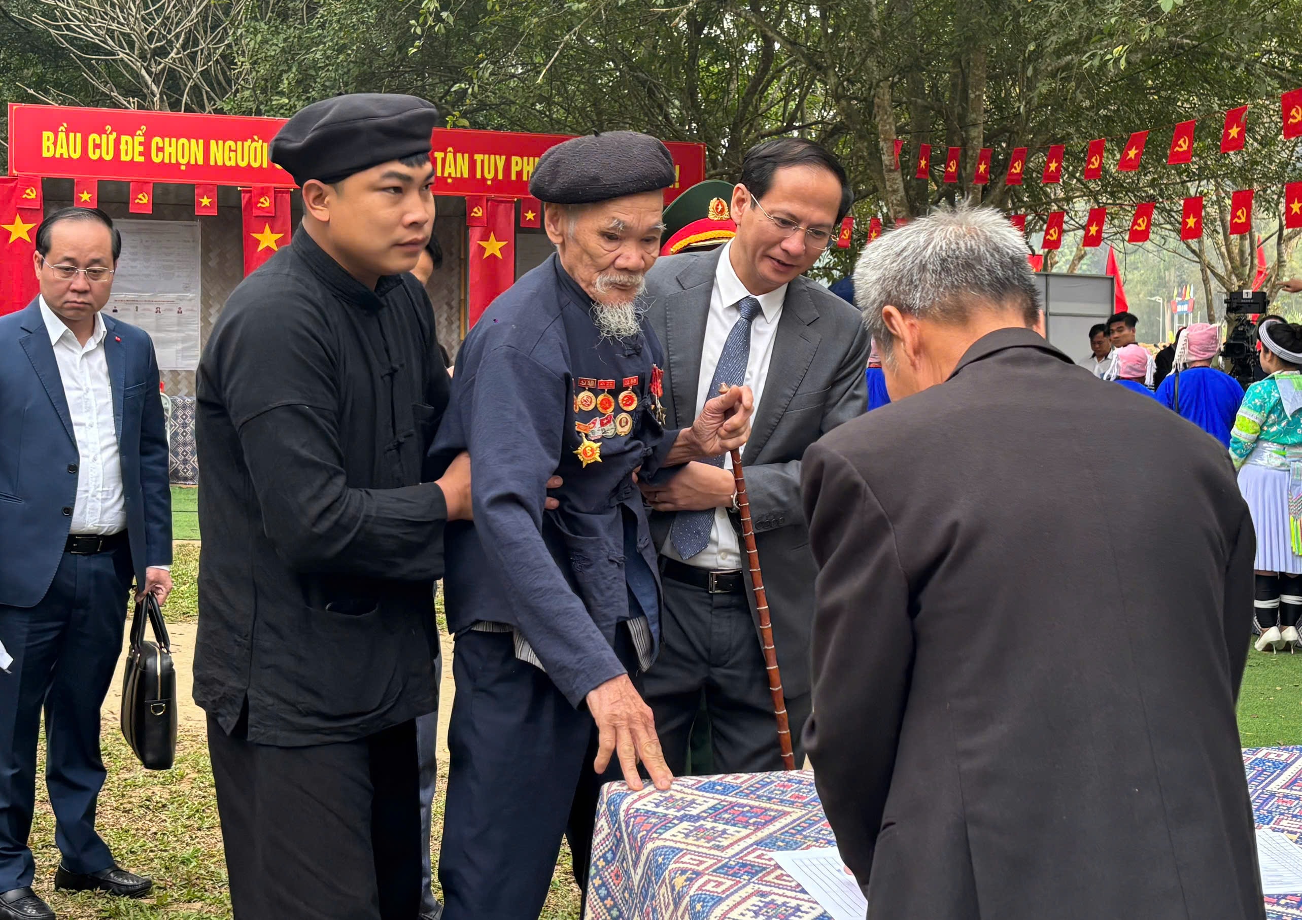 Ủy viên Trung ương Đảng, Bí thư Tỉnh ủy Hầu A Lềnh cùng các đại biểu dự khai mạc bầu cử và tham gia bỏ phiếu tại xã Tân Trào