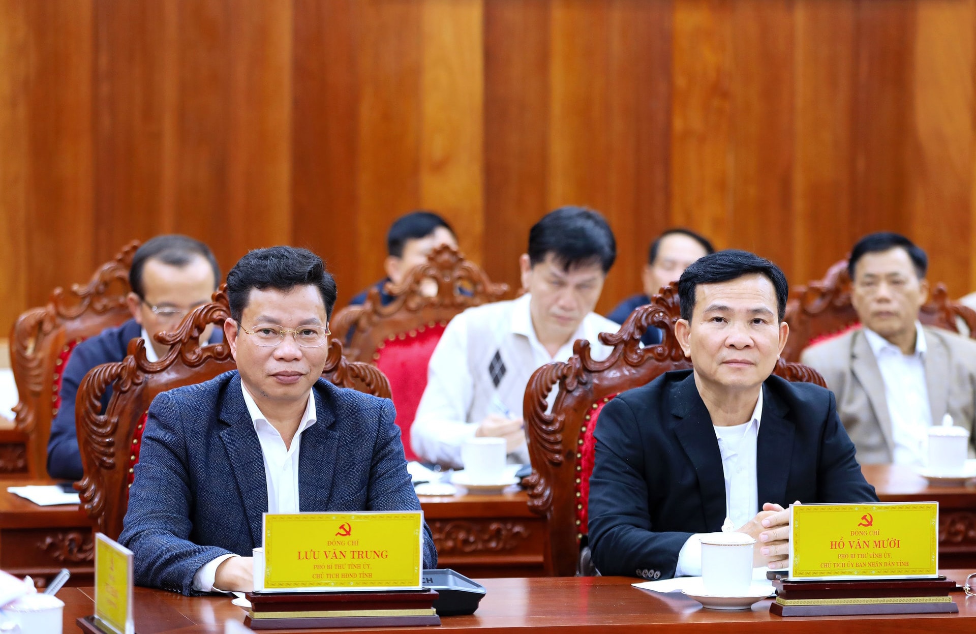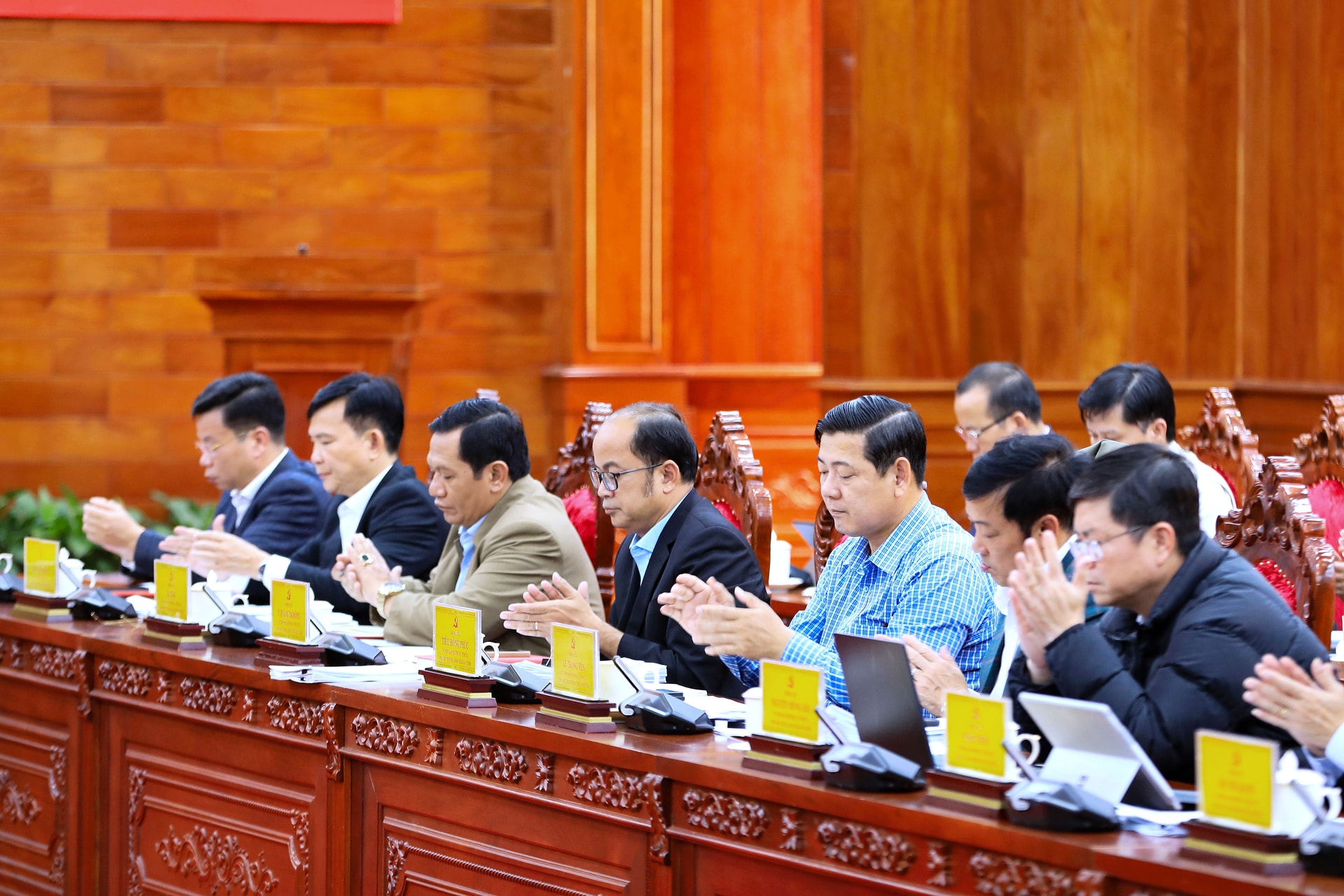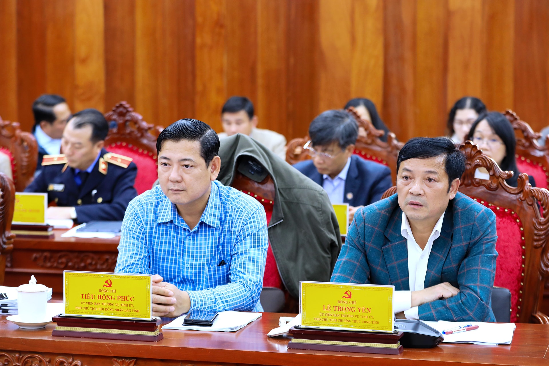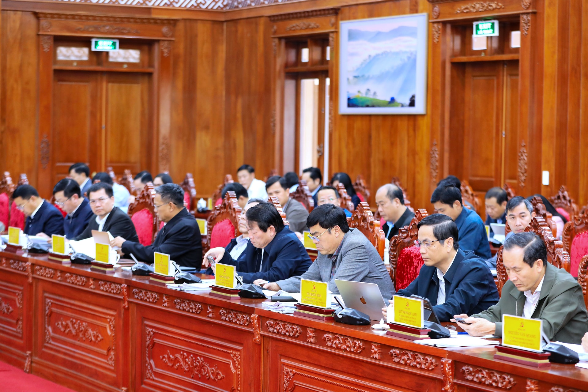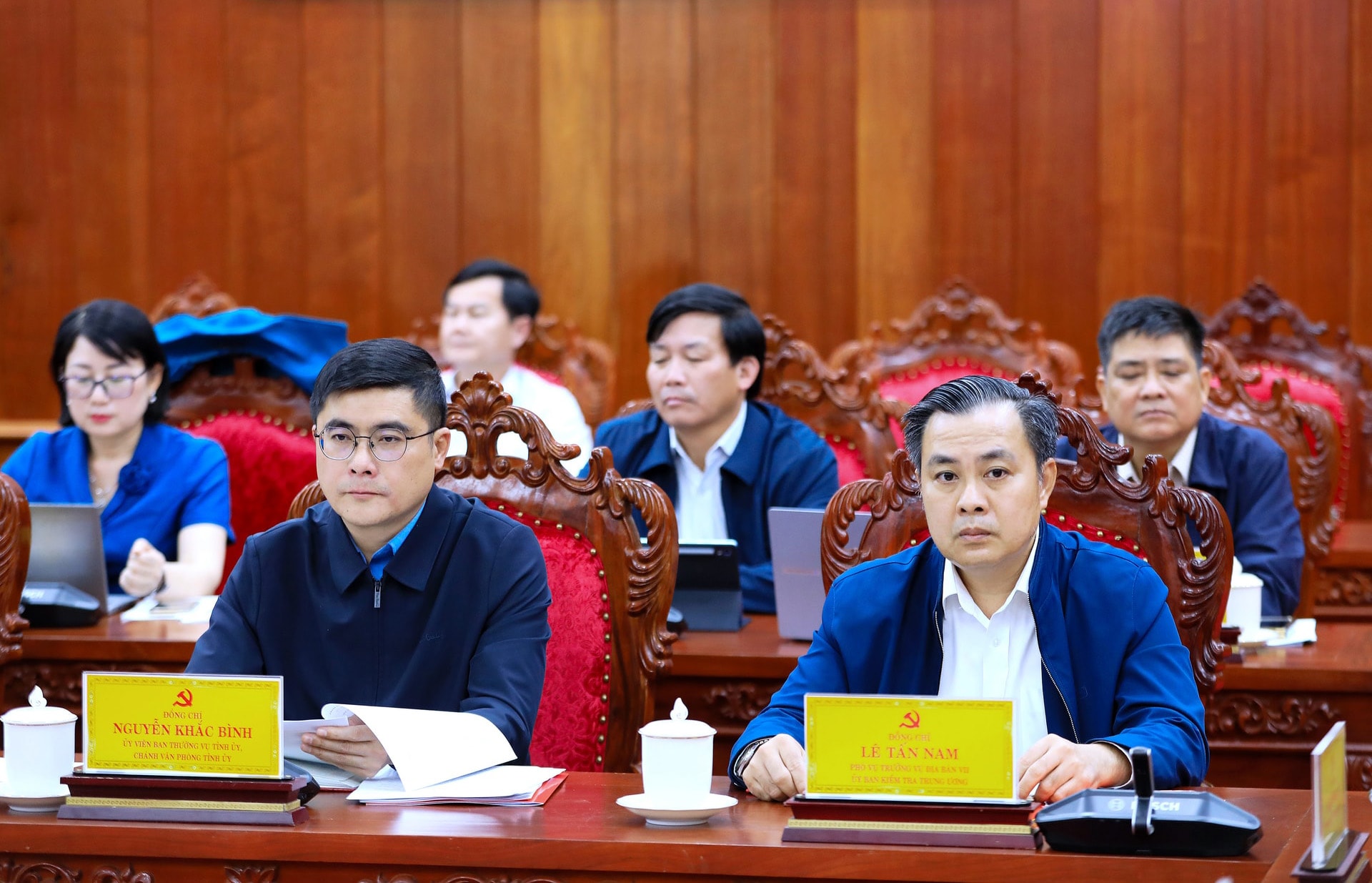 Các đồng chí trong Ban Thường vụ Tỉnh ủy dự hội nghị