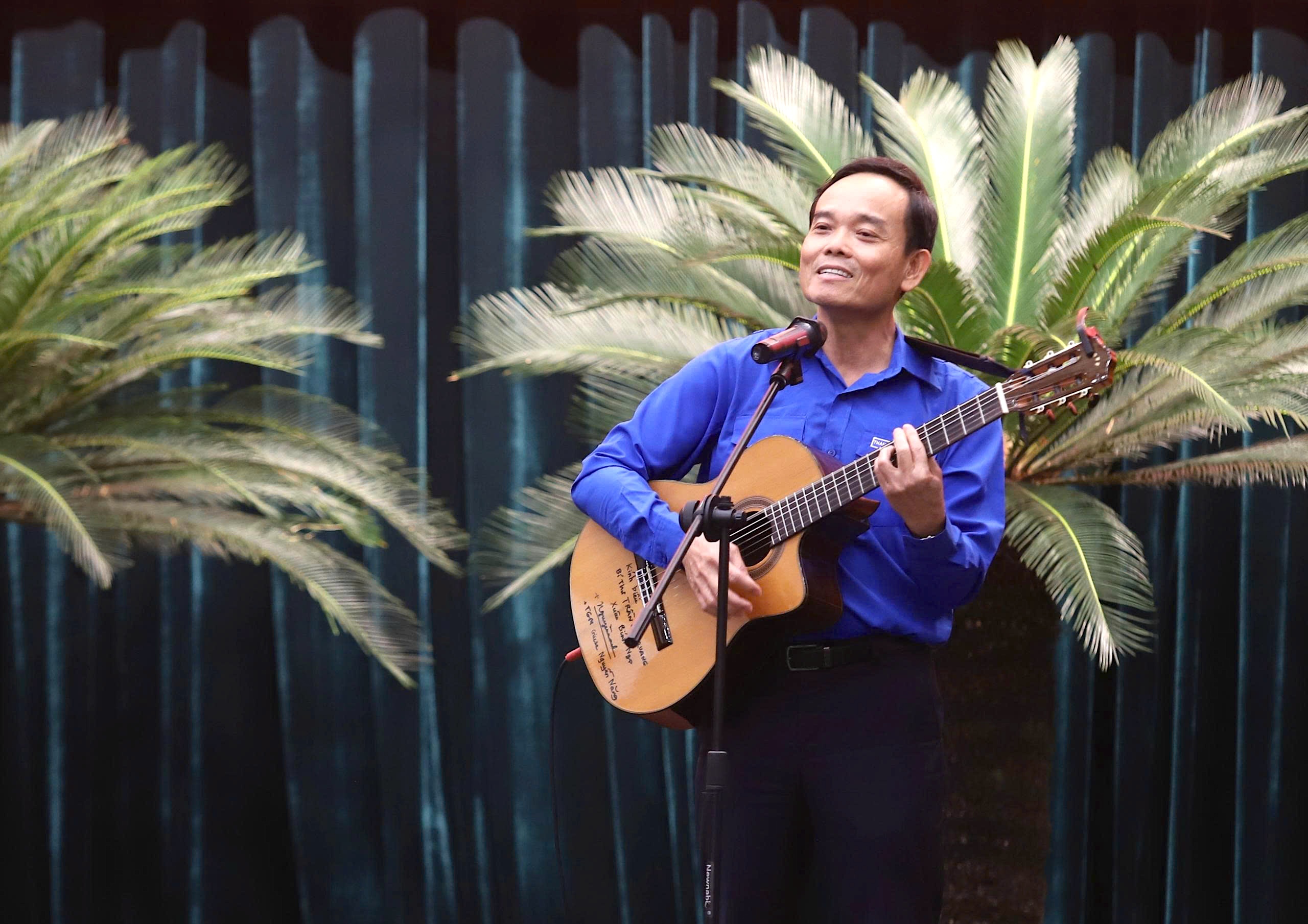 Bí thư Thành ủy TP.HCM Trần Lưu Quang đàn, hát cùng thanh niên TP.HCM. Ảnh: HÀ THƯ