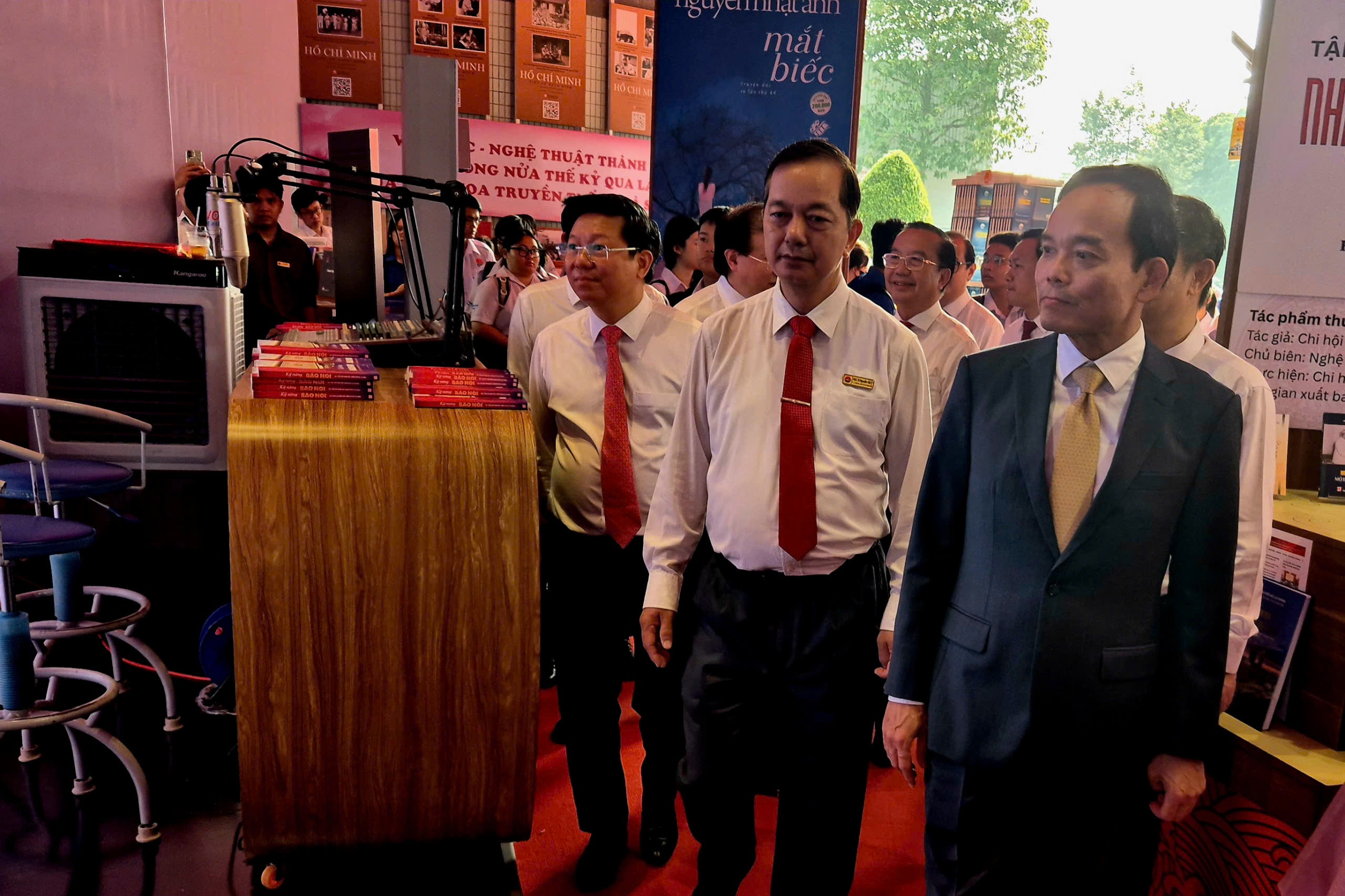 Bí thư TP.HCM Trần Lưu Quang cùng các lãnh đạo thành phố tham quan không gian triển lãm Báo chí - Xuất bản.