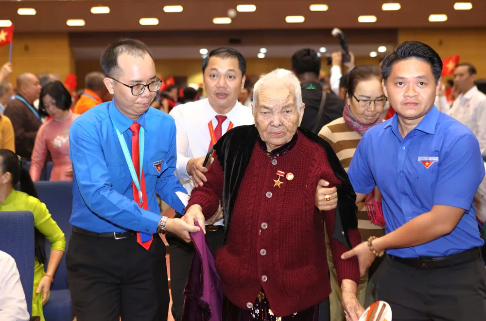 Bà Võ Thị Dung, nguyên Phó Bí thư Thành ủy, nguyên Chủ tịch Ủy ban MTTQ Việt Nam TP.HCM, dự đại hội. Ảnh: NGUYỆT NHI