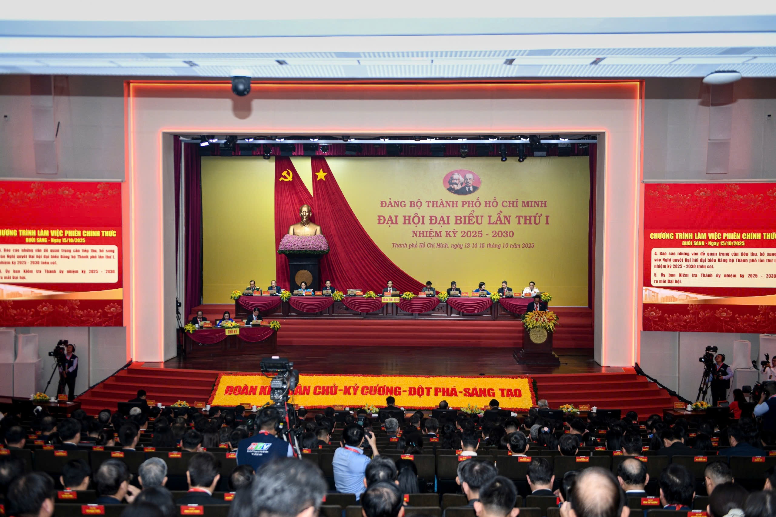 Phiên trù bị đại hội diễn ra vào sáng 13/10. Cả ngày 14 và buổi sáng 15/10, đại biểu tham dự Đại hội đại biểu Đảng bộ TP.HCM lần thứ I, nhiệm kỳ 2025-2030, phiên chính thức và bế mạc.
