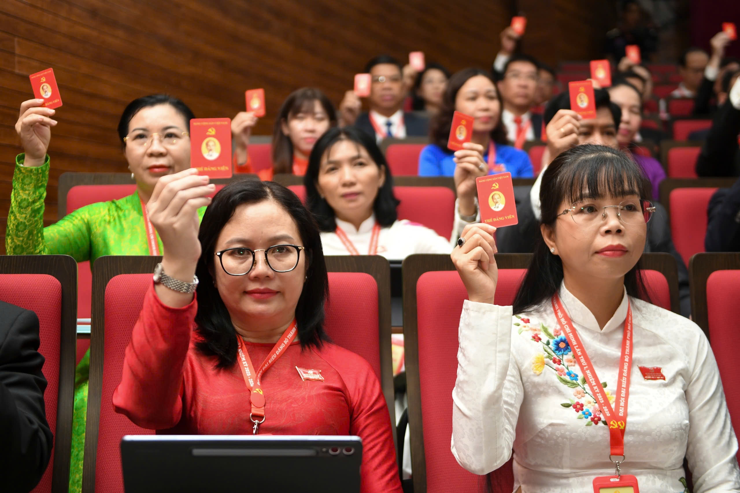 Các đại biểu biểu quyết tại đại hội. Ảnh: Duy Hiệu.