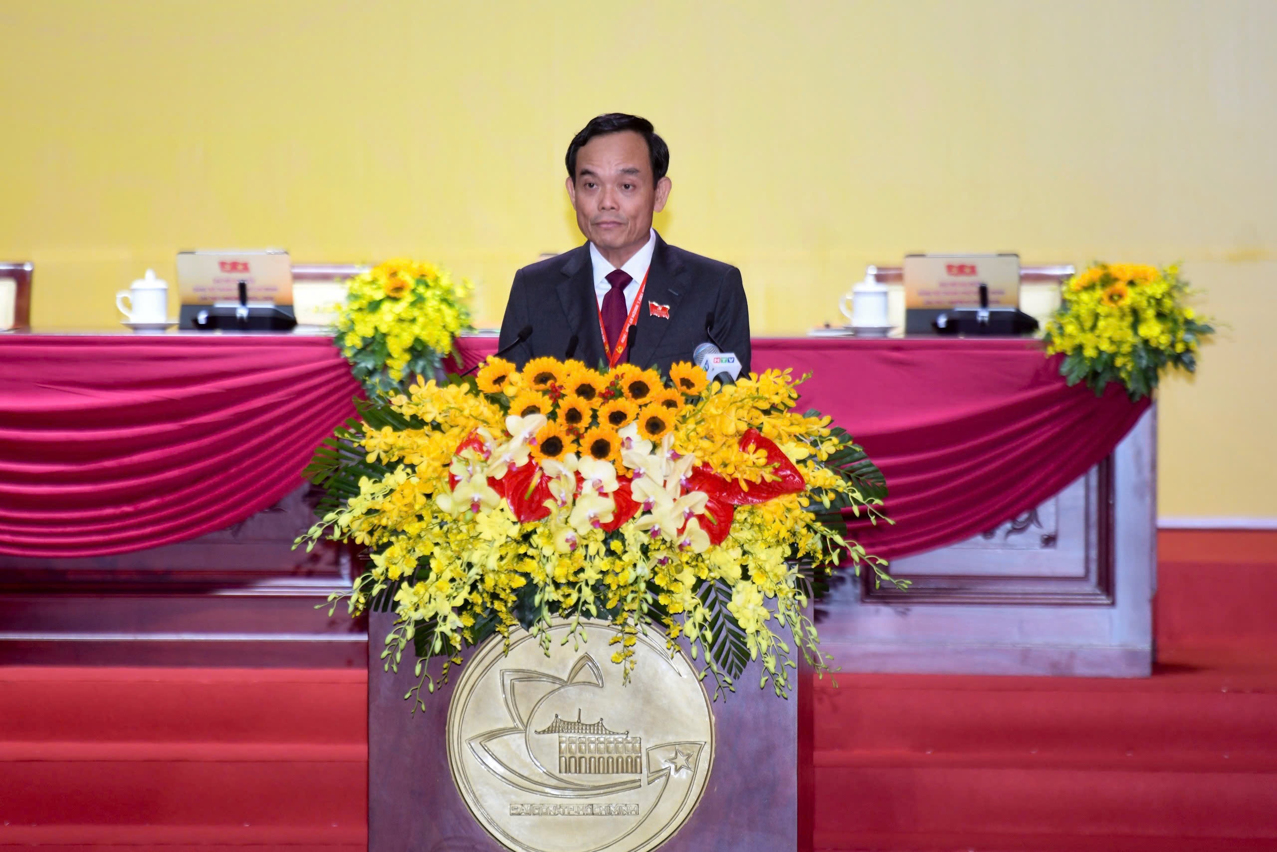 Bí thư Trần Lưu Quang phát biểu khai mạc phiên trù bị Đại hội đại biểu Đảng bộ TP.HCM lần thứ I, nhiệm kỳ 2025-2030. Ảnh: Duy Hiệu.