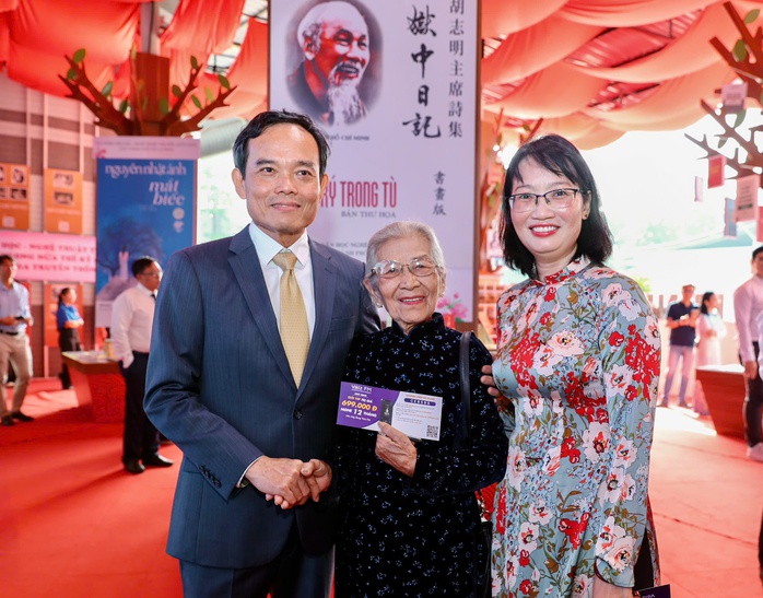Từ trái qua: Bí thư Thành ủy TP HCM Trần Lưu Quang, NSƯT Phi Điểu và Phó Chủ tịch UBND TP HCM Trần Thị Diệu Thúy