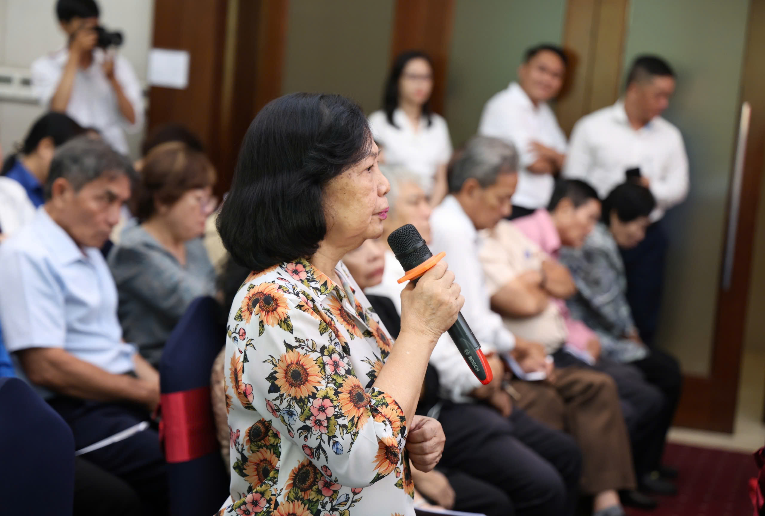 Cử tri nêu ý kiến tại buổi tiếp xúc. Ảnh: THANH THÙY