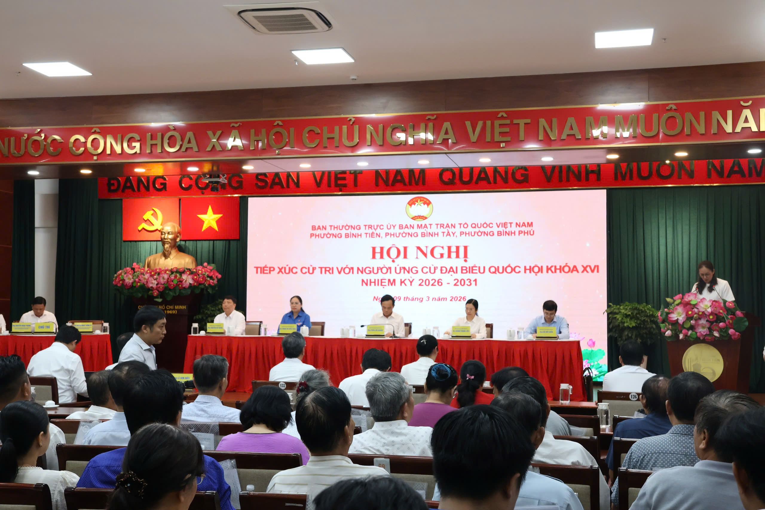 Tiếp tục chương trình tiếp xúc cử tri trước kỳ bầu cử đại biểu Quốc hội khóa XVI, Ủy viên Bộ Chính trị, Bí thư Thành ủy TP.HCM Trần Lưu Quang cùng bốn ứng viên đại biểu Quốc hội đơn vị bầu cử số 6 đã tiếp xúc cử tri các phường Bình Tiên, Bình Tây, Bình Phú vào chiều 9-3.