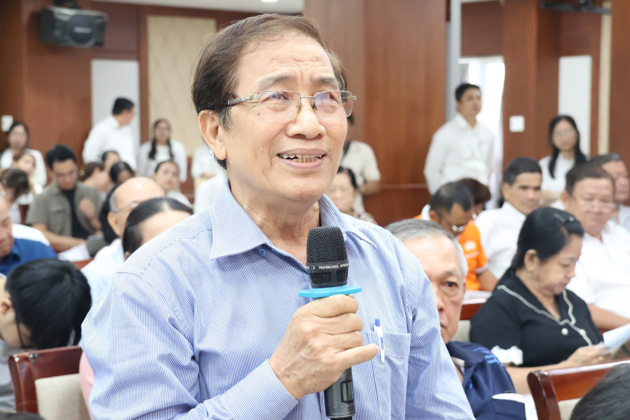 Cử tri nêu ý kiến tại buổi tiếp xúc. Ảnh: THANH TUYỀN