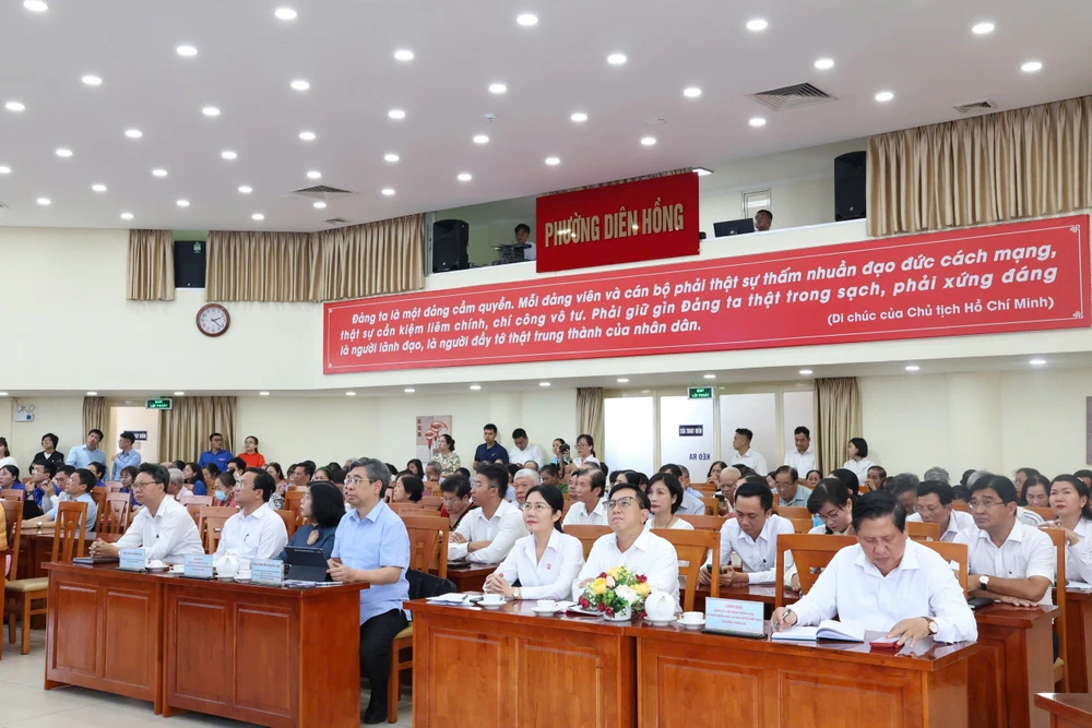 Hội nghị tiếp xúc cử tri với người ứng cử ĐBQH khóa XVI, nhiệm kỳ 2026-2031, đơn vị bầu cử số 6 của TP.HCM. Ảnh: THANH THÙY