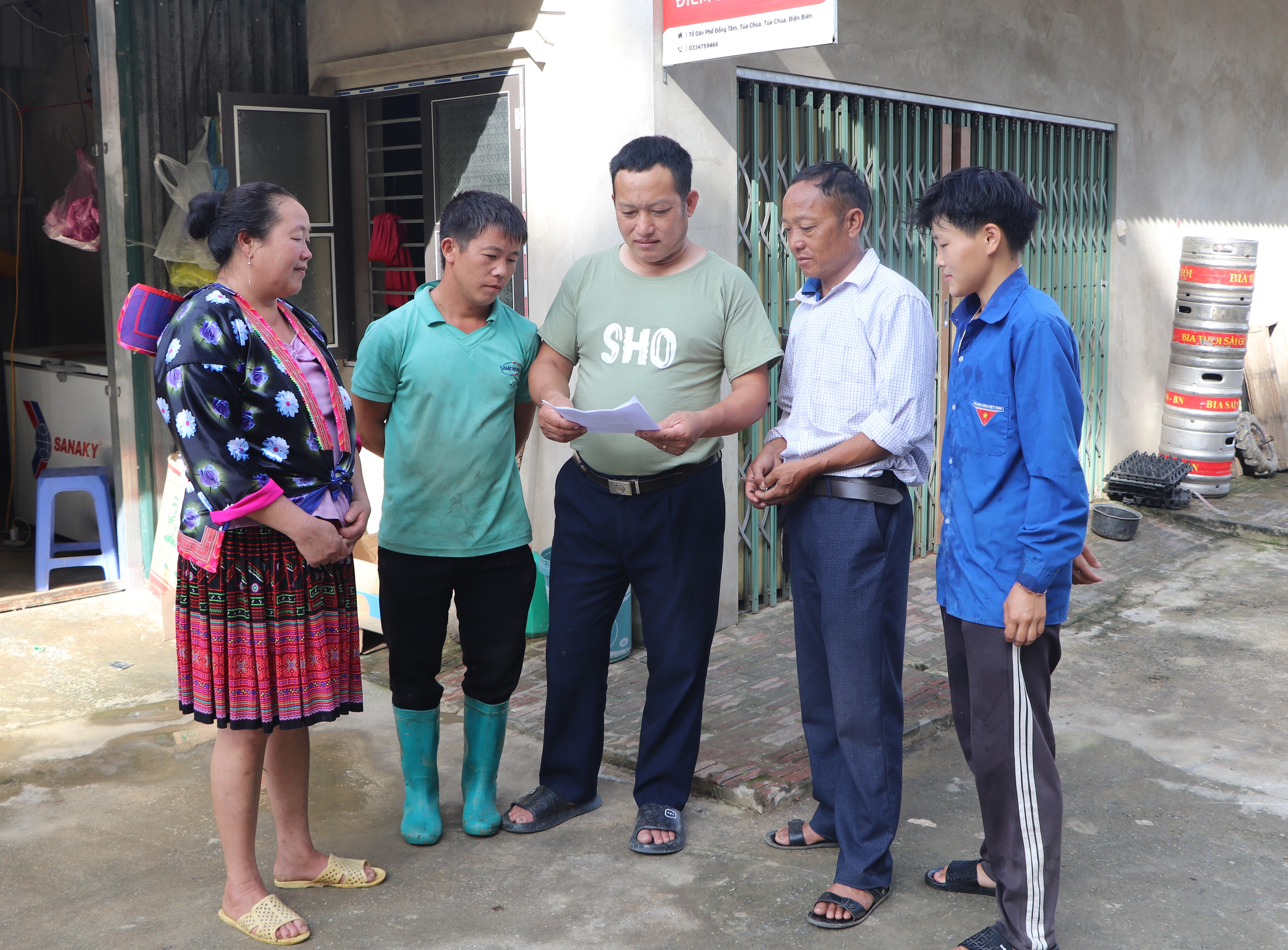 AnhThào A Lử (ở giữa) Bí thư Chi bộ bản Đề Dê Hu II, đại biểu HĐND xã Sính Phình tuyên truyền nghị quyết đến người dân trong bản.