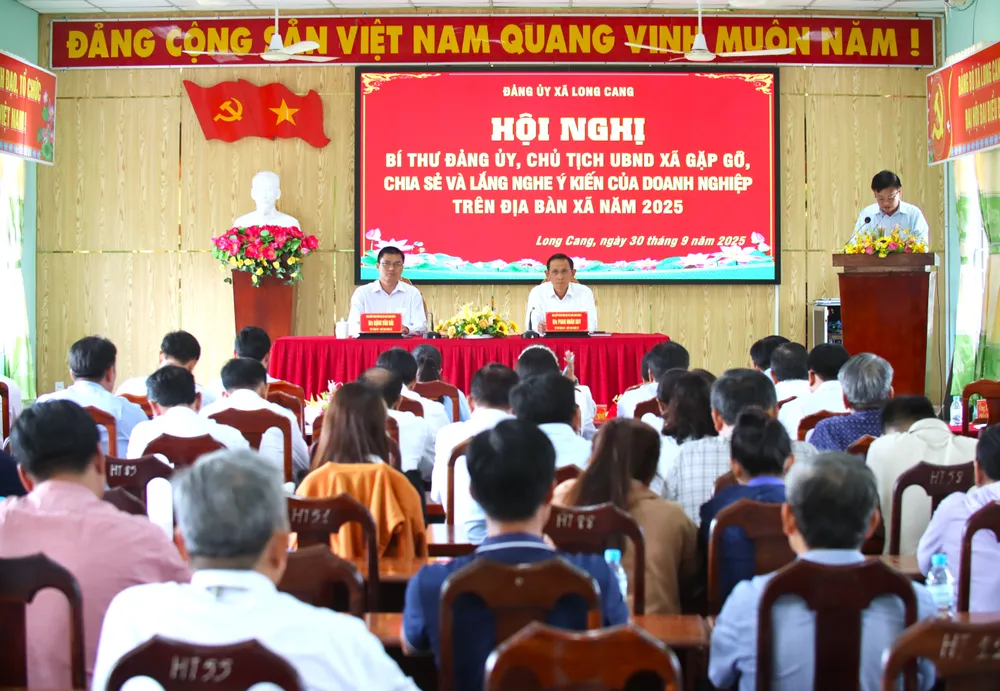 Chiều 30-9, hơn 100 doanh nghiệp trên địa bàn xã Long Cang (tỉnh Tây Ninh) đã đối thoại với lãnh đạo xã để phản ánh những khó khăn, vướng mắc và cùng bàn giải pháp phát triển kinh tế địa phương.