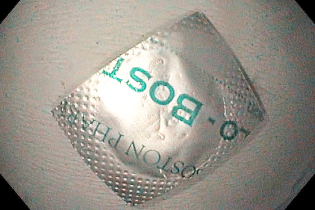 Theo đó, nam bệnh nhân T.T (52 tuổi, ngụ tỉnh Lâm Đồng) nhập viện trong tình trạng đau bụng dữ dội. Qua nội soi dạ dày, bác sĩ phát hiện trong dạ dày có dị vật là một viên thuốc còn nguyên vỏ, nằm ở vùng môn vị, khiến niêm mạc dạ dày bị trầy xước.
