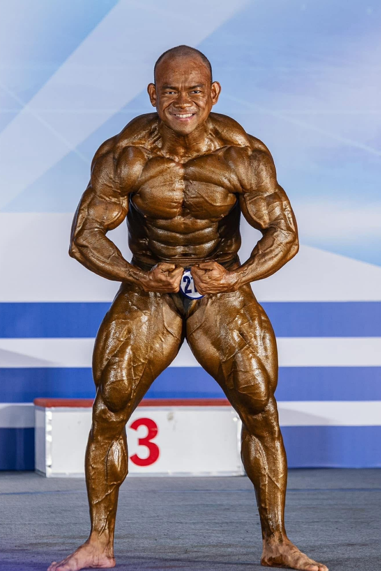 Người đàn ông trong ảnh là Phạm Kim Nhân (40 tuổi, Đà Nẵng), vận động viên thể hình chuyên nghiệp.
