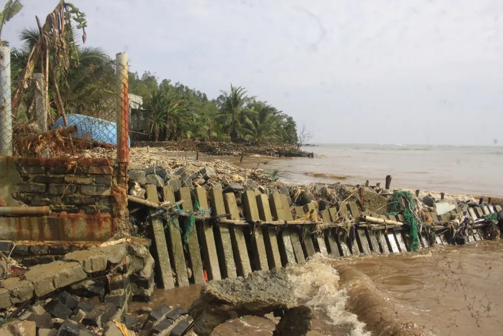 Bà Lê Thị Thu Nguyệt cho biết đợt triều cường gần đây đã cuốn trôi toàn bộ phần kè gia đình bà tự làm: “Nước biển còn ập sâu vào khu dân cư, tràn qua nhà đến tận đường đi của người dân, có hộ dân phải chuyển đi nơi khác sinh sống”.