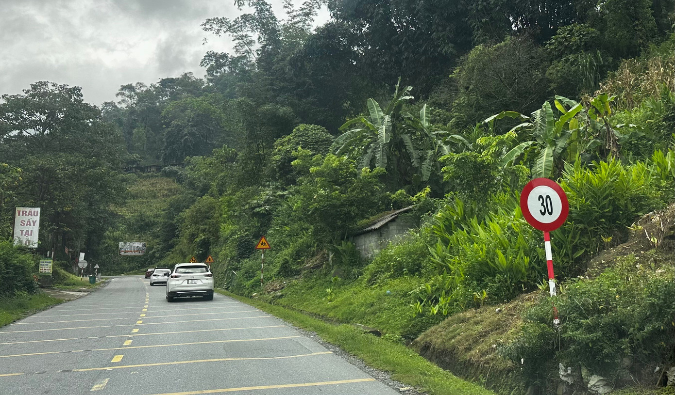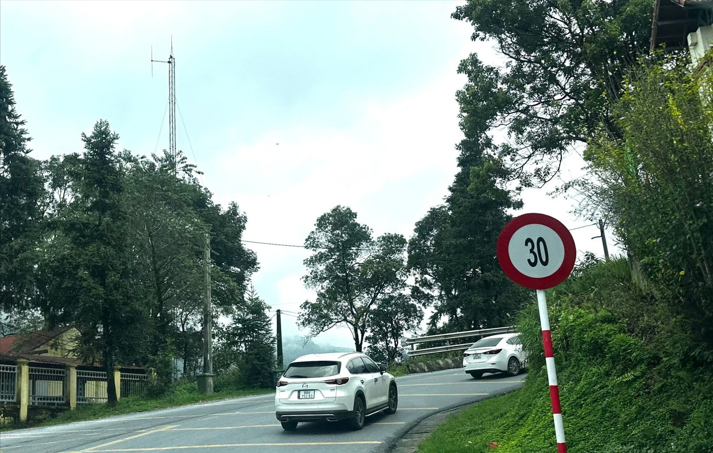 Một biển báo hạn chế tốc độ 30 km/h trên tuyến đường lên Sa Pa.