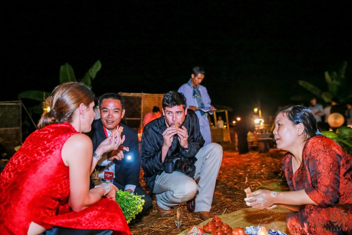 Với trải nghiệm bữa ăn giữa đồng, khách đăng ký tour này đa phần là khách quốc tế, mong chờ những hoạt động đặc trưng, đậm nét văn hóa bản địa trên nền tảng du lịch bền vững, gắn kết cộng đồng. Những ngày có sự kiện, người dân trong làng còn họp chợ tại The Field, đem mớ rau, con cá, giỏ trứng ra bán, tái hiện không gian sinh hoạt xưa. Nếu khách muốn tìm hiểu quy trình canh tác lúa, anh Thanh sẽ nhờ người nông dân làm lại mọi khâu trên chính đồng ruộng của mình và chi trả thù lao cụ thể. Món quê đãi khách cũng đến từ vườn nhà các hộ nông dân cộng với nguyên liệu do The Field tự trồng và tuyển chọn.