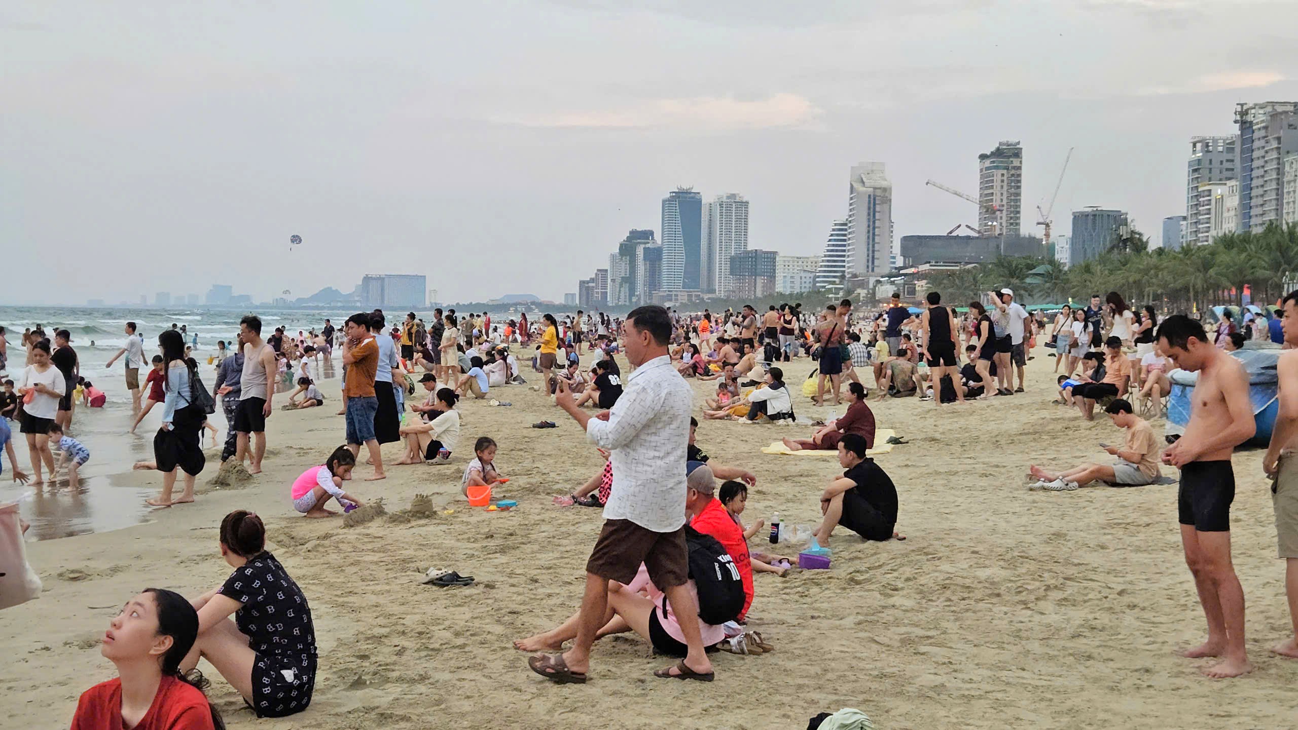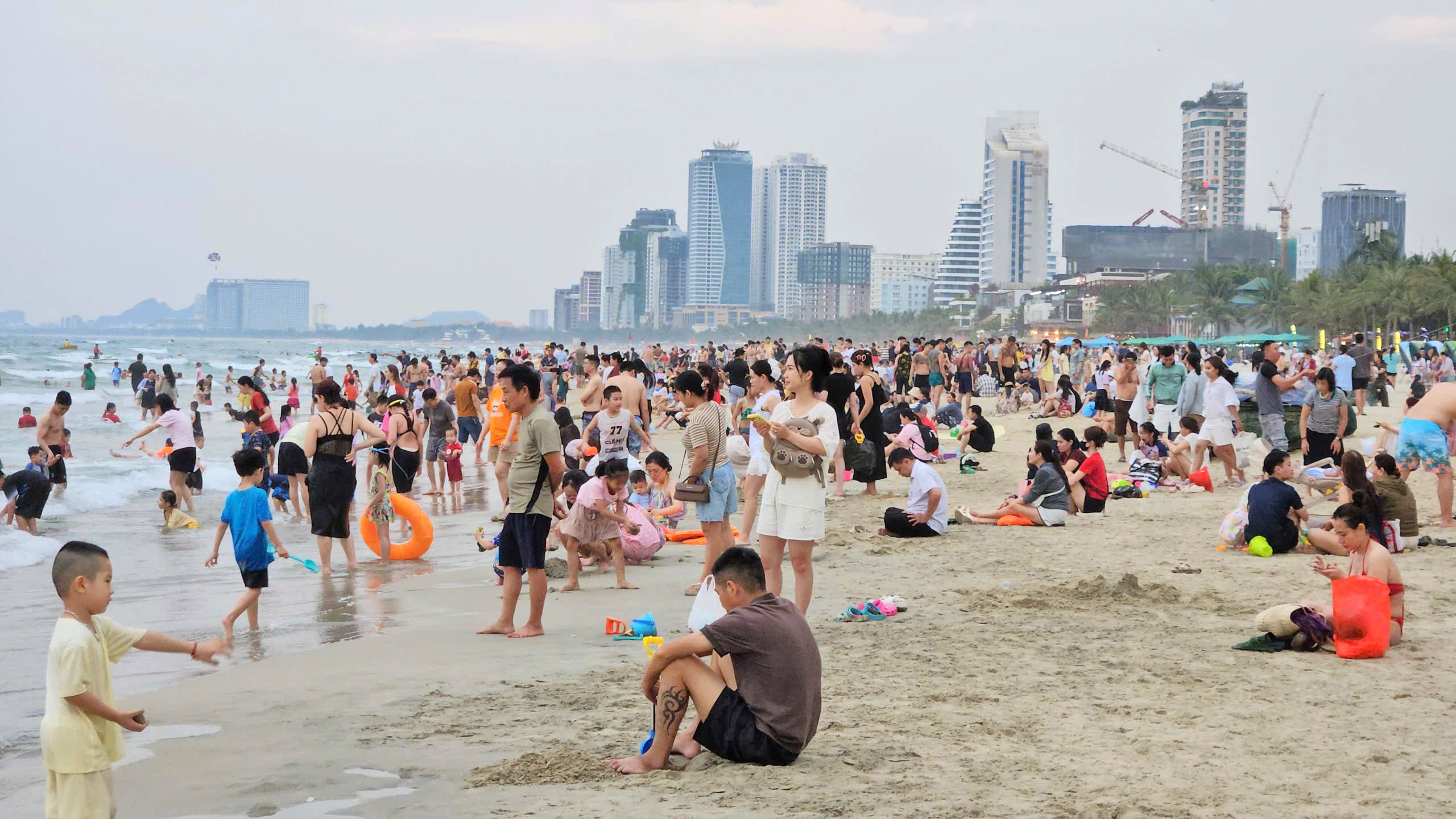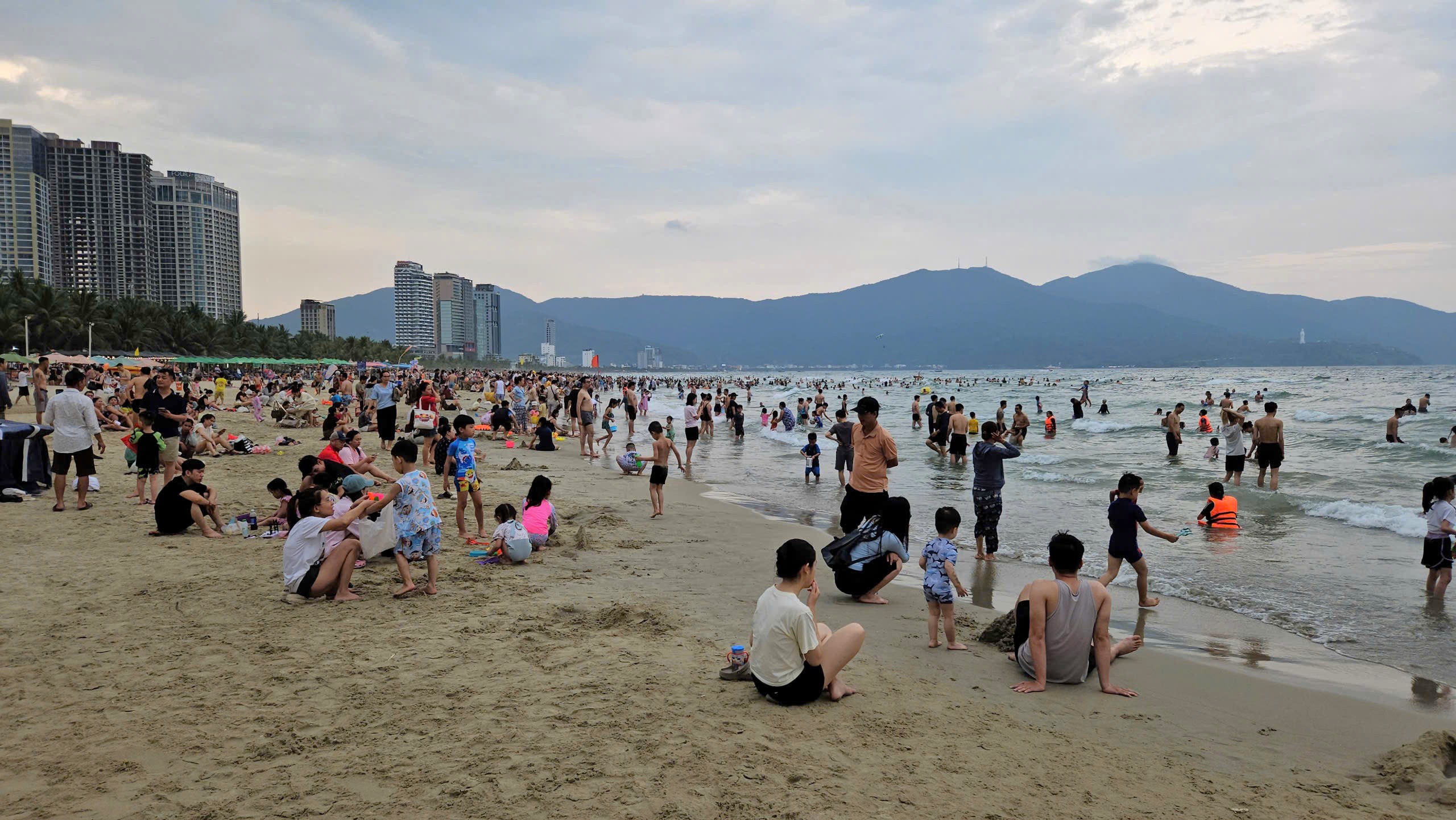 Bãi biển Mỹ Khê (phường An Hải, TP Đà Nẵng) những ngày này đông nghịt du khách. Đây là một trong sáu bãi biển từng được tạp chí Forbes (Mỹ) bình chọn là quyến rũ nhất hành tinh. Ảnh: TẤN VIỆT