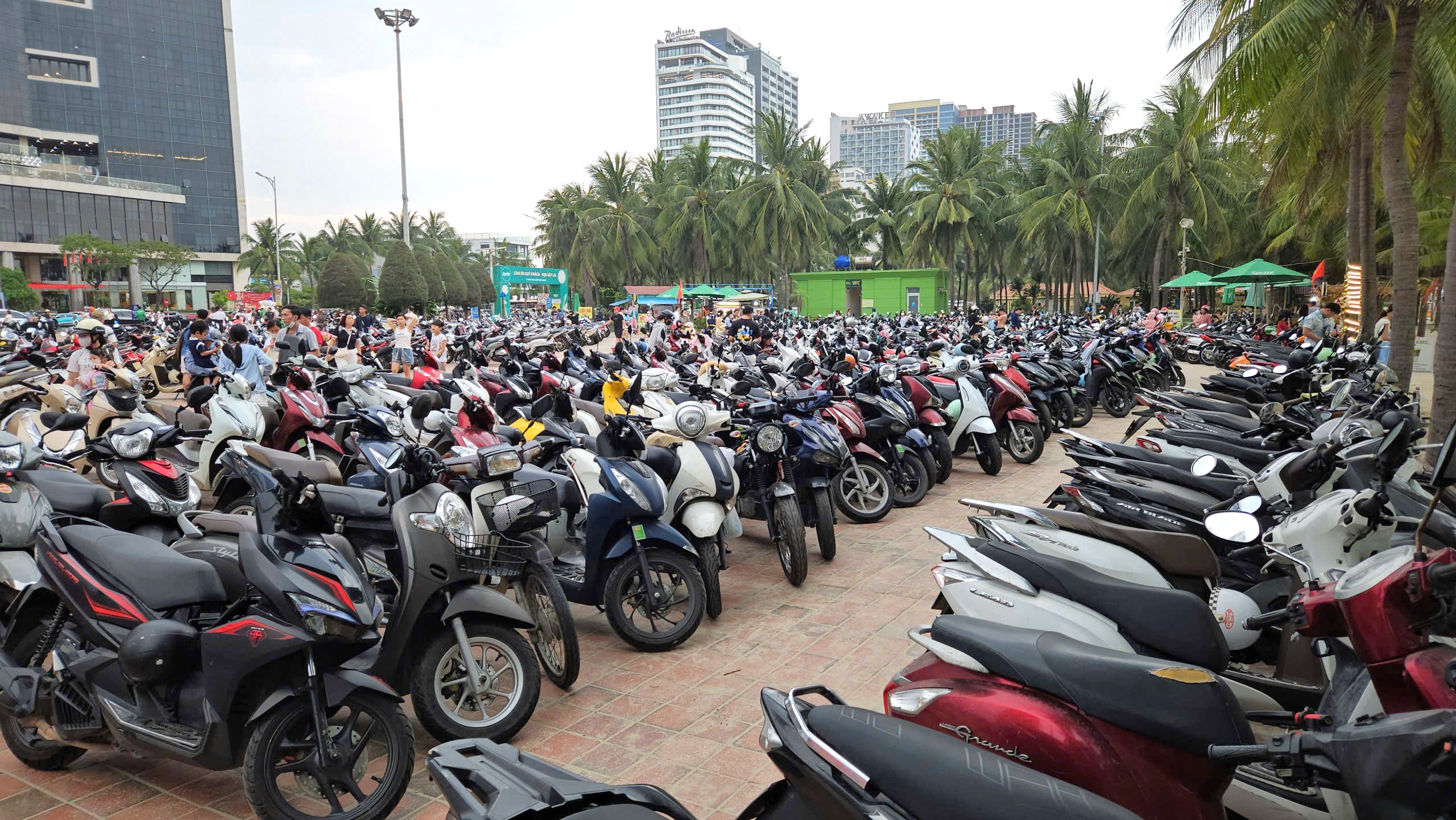 Bãi giữ xe tại Công viên Biển Đông quá tải. Ảnh: TẤN VIỆT