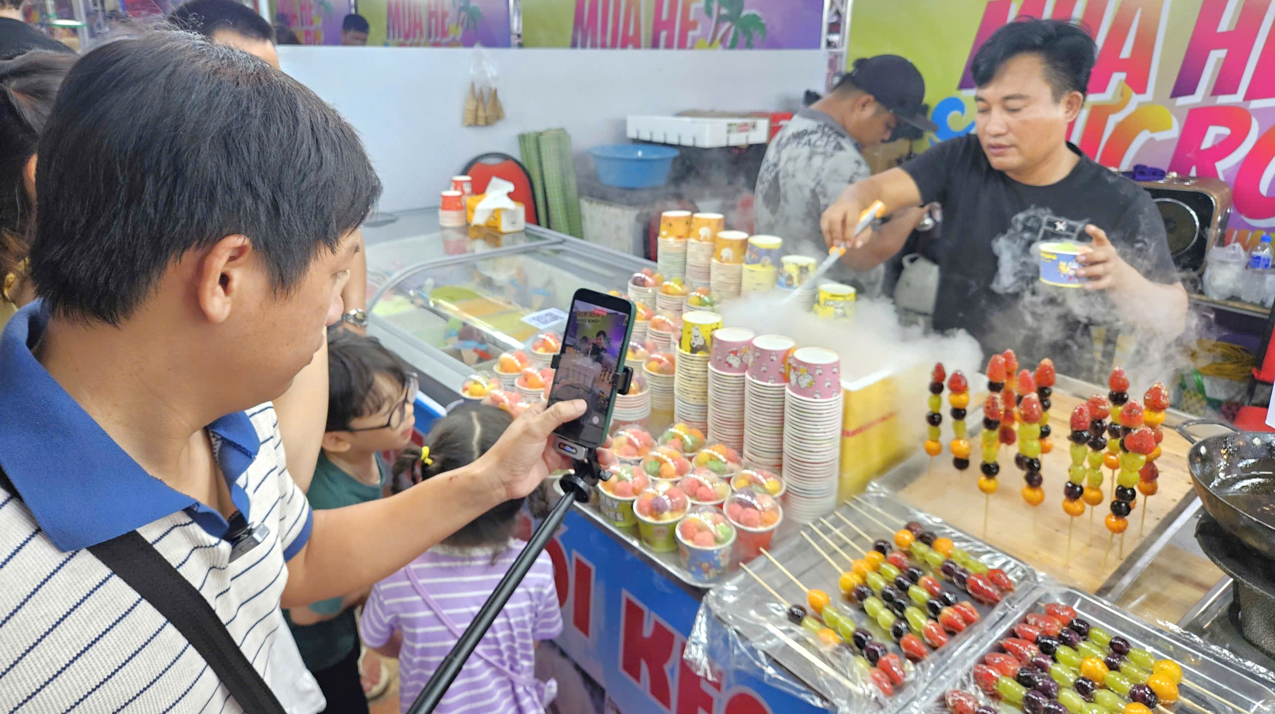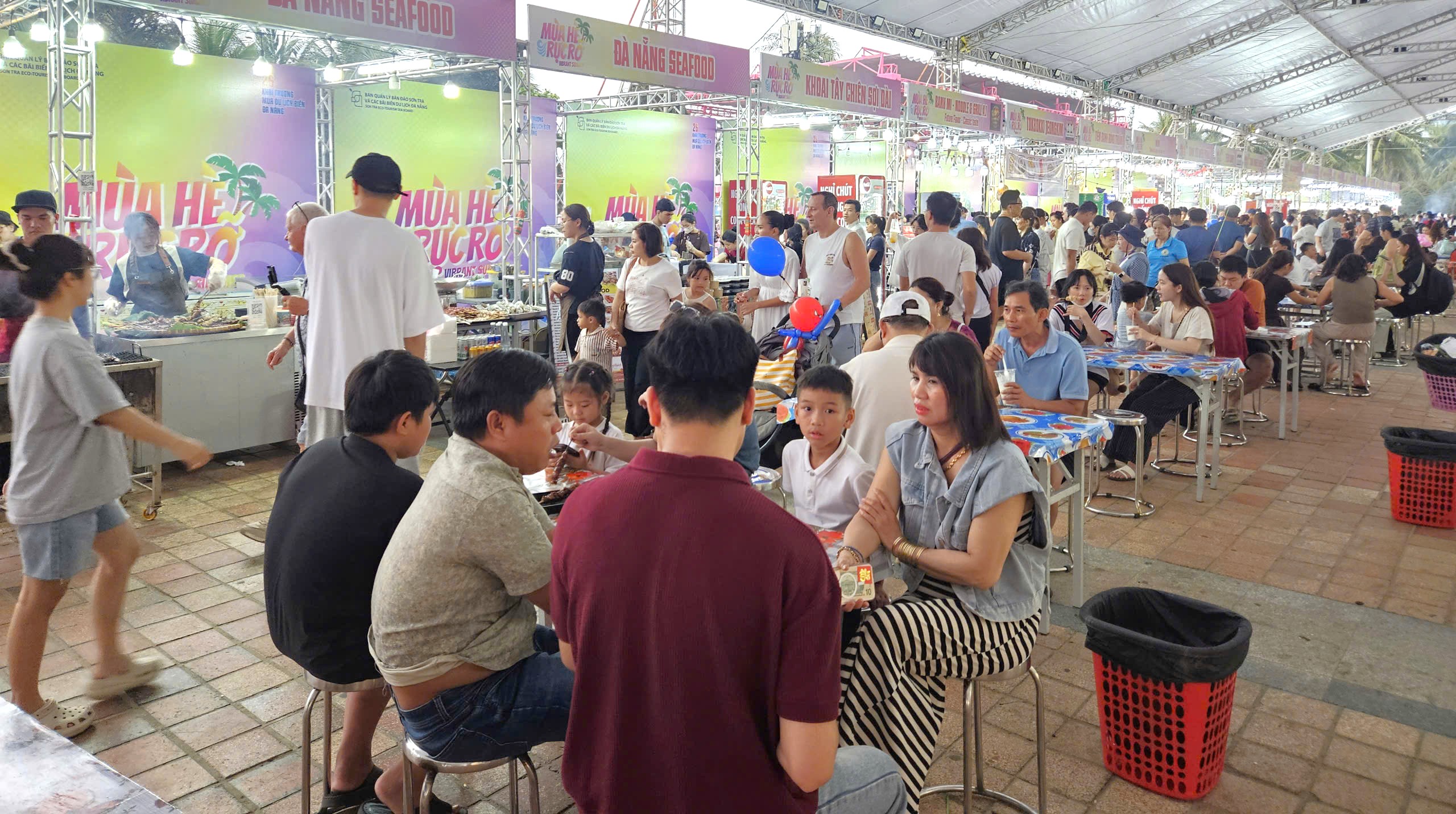Không gian ẩm thực đặc sắc tại Công viên Biển Đông với hàng chục gian hàng. Từ khoảng 16 giờ, thực khách đã ngồi kín trước các hàng quán để chờ được phục vụ những đặc sản nổi tiếng nhất của vùng đất Quảng Nam - Đà Nẵng. Ảnh: TẤN VIỆT