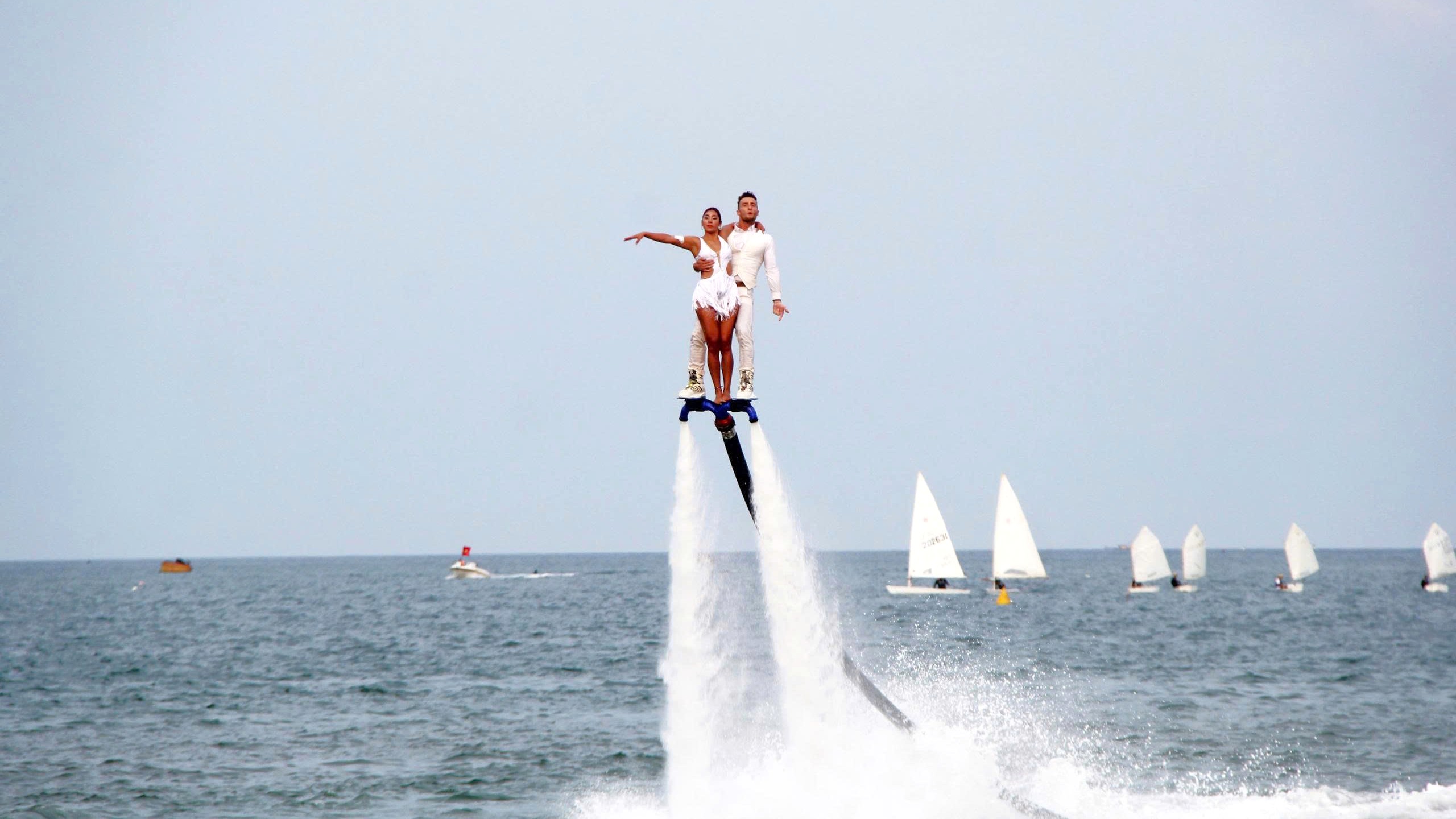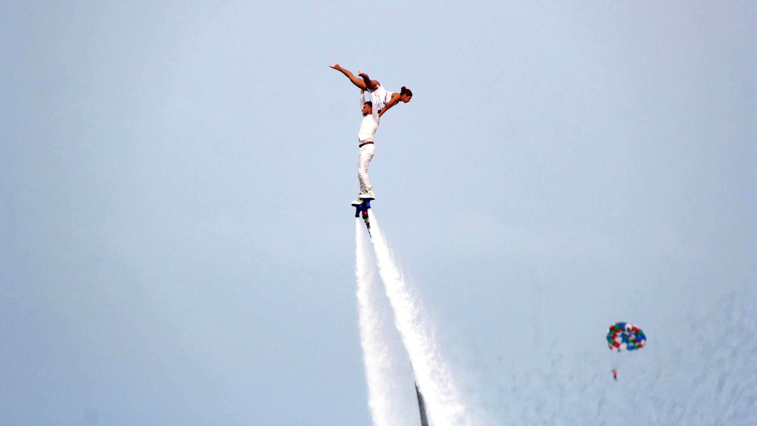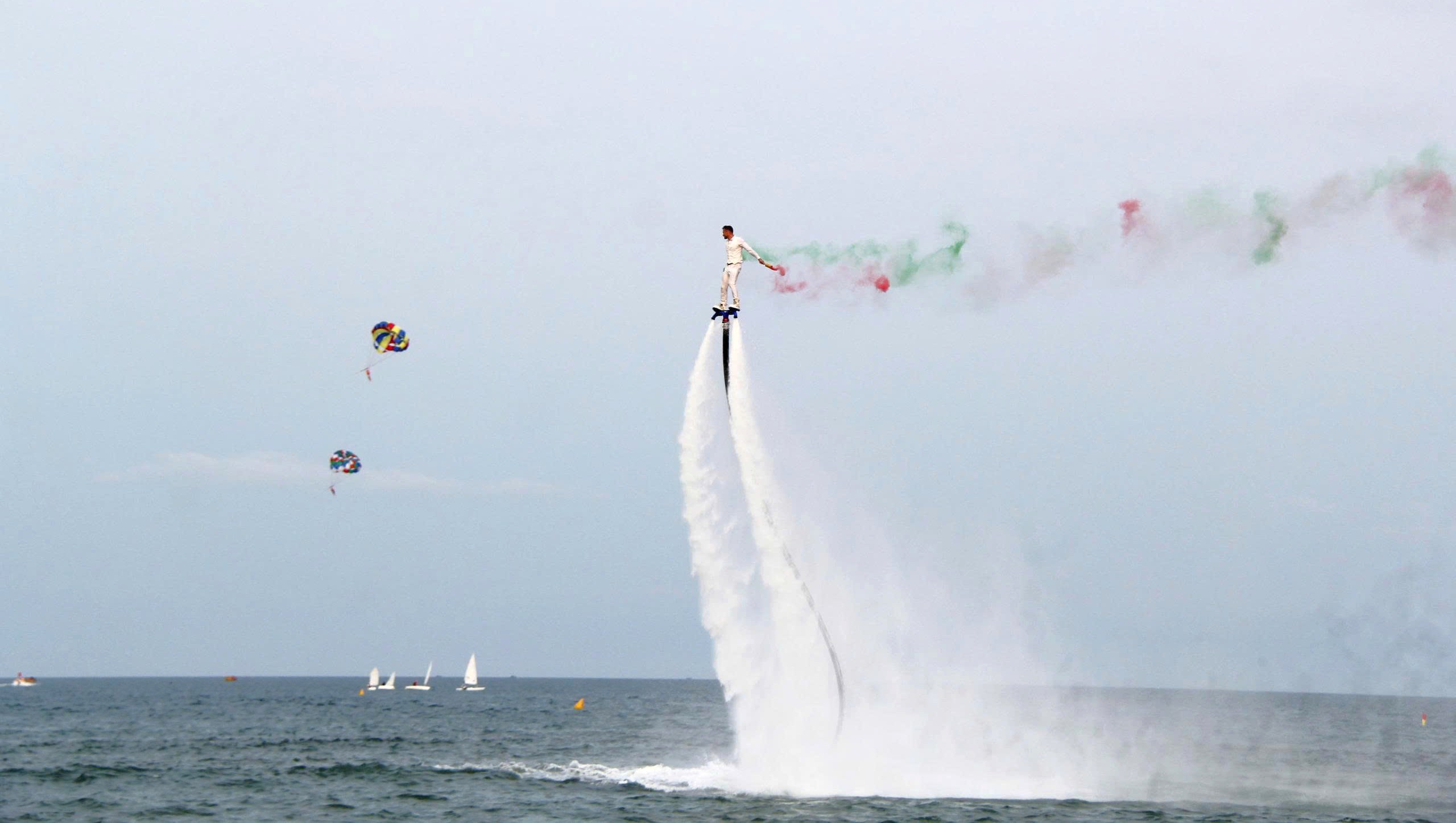 Trên biển Đà Nẵng là phần trình diễn flyboard đầy nghệ thuật của những nghệ sĩ người Nga, tác phẩm mang tên Vũ khúc đại dương. Ảnh: TẤN VIỆT