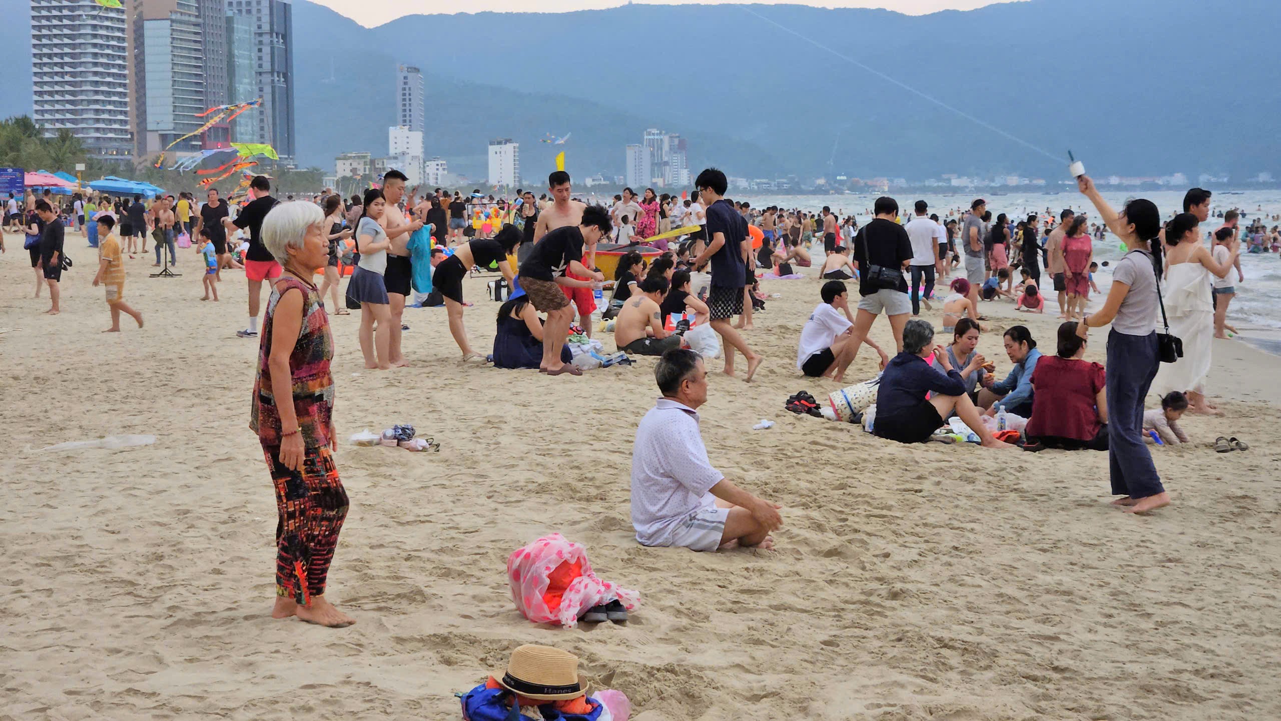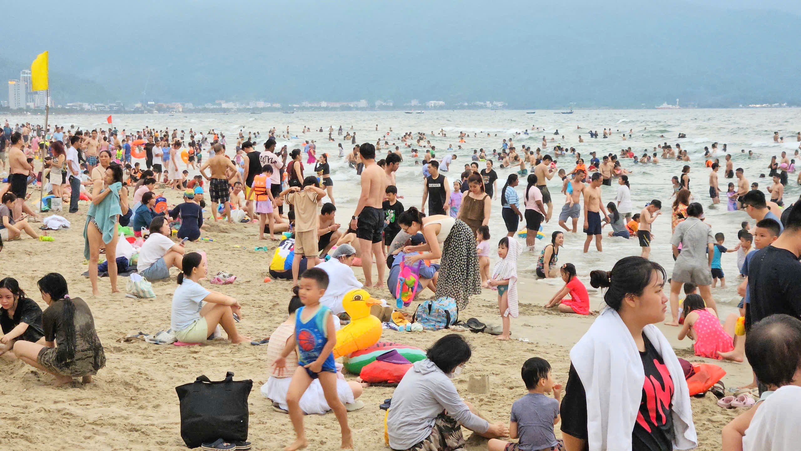 Clip du khách đông nghịt tắm biển Đà Nẵng.