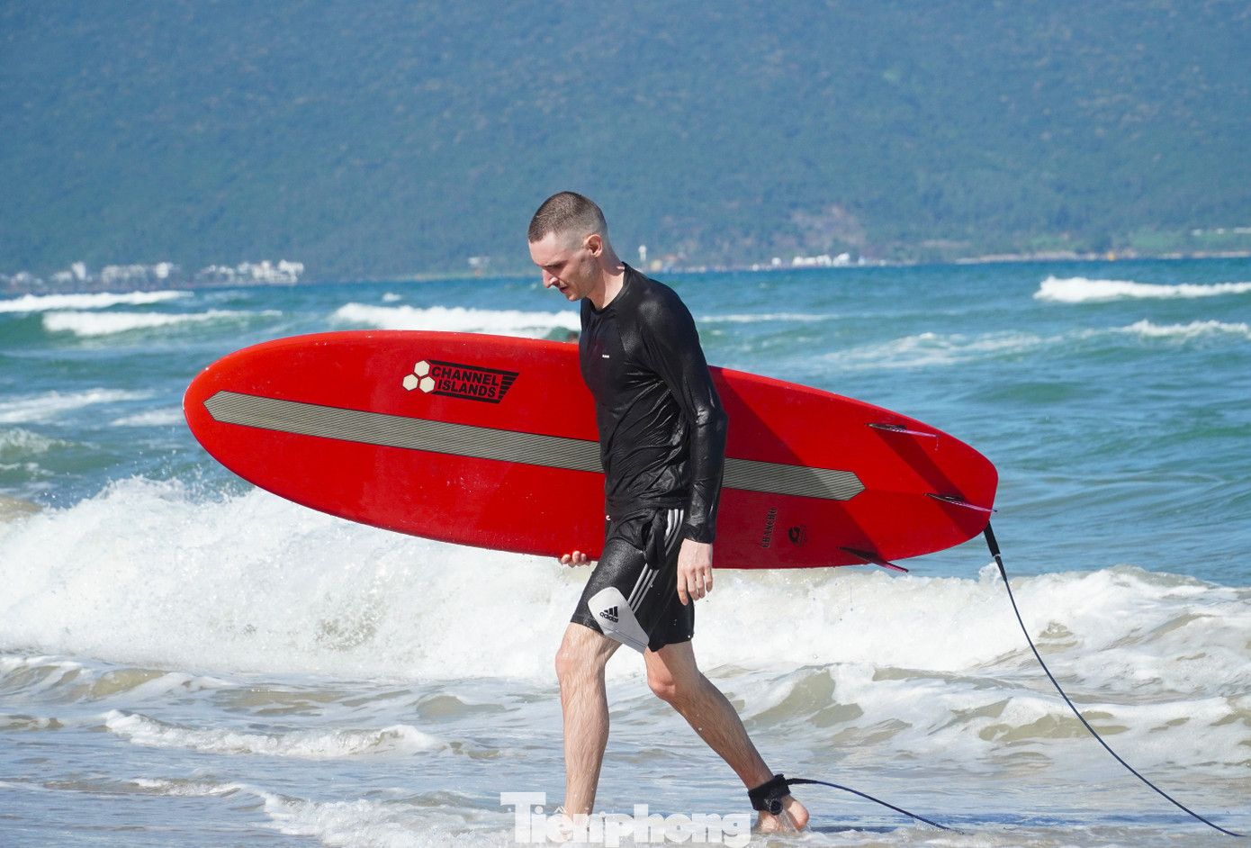Trời xanh, sóng nhẹ tạo điều kiện lý tưởng cho môn lướt ván. Ông Rowan (du khách Mỹ) cho hay ông đến Đà Nẵng từ ngày 14/2 và xuống biển chơi lướt sóng liên tục từ hôm đó đến nay. "Biển Đà Nẵng vừa đẹp, sóng vừa êm, khu vực gần bờ không có đá hay san hô nhiều nên lướt sóng rất an toàn", ông Rowan đánh giá.