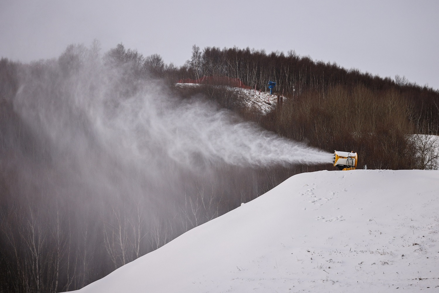 Máy phun tuyết nhân tạo được sử dụng ở Olympic Mùa Đông 2022, Bắc Kinh, Trung Quốc. (Ảnh: Reuters)