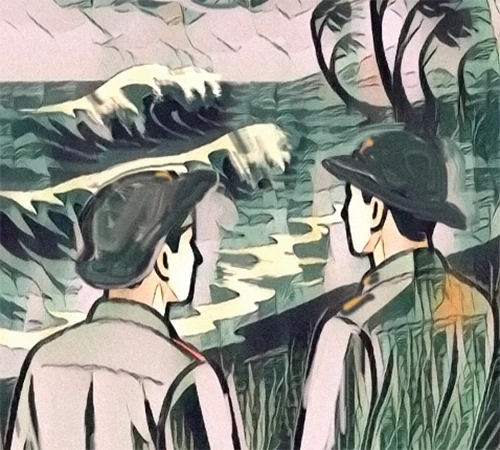 "Biển sắp động rồi đấy..." - Trung đội trưởng Minh thì thầm, mắt nhìn về phía đường chân trời đang nhòa đi trong màn mây đen.