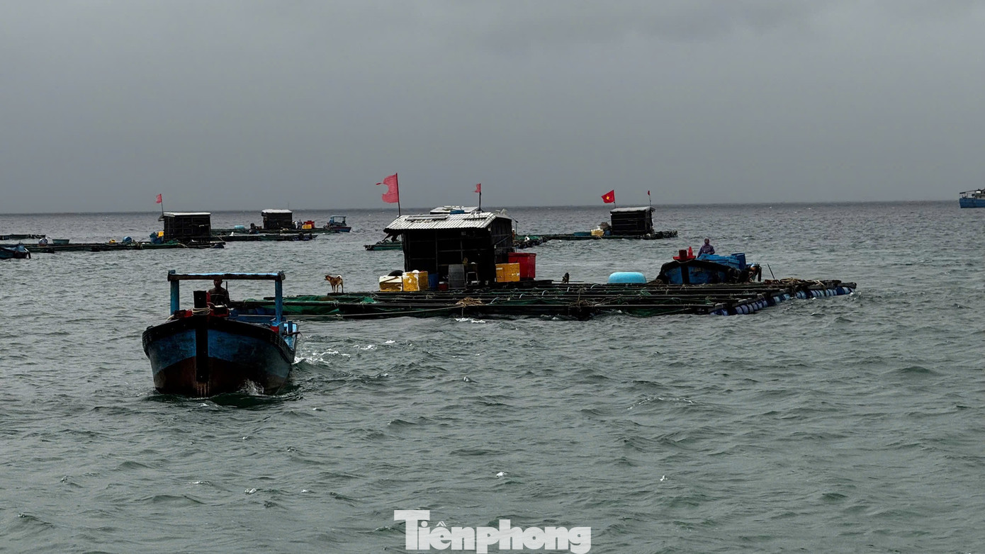 Người dân đặc khu Lý Sơn kéo lồng bè nuôi trồng thủy sản vào bên trong khu vực an toàn.