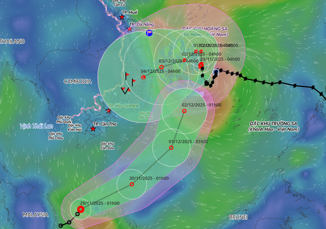 Cũng theo Trung tâm Dự báo Khí tượng Thủy văn Quốc gia, bão số 15 đang diễn biến rất khó lường. Dự báo trong hôm nay và ngày mai, bão liên tục đổi hướng bắc. Từ khoảng đêm 30/11, bão bắt đầu đổi hướng tây, sau đó là tây tây nam, tiến về vùng biển Bình Định – Phú Yên cũ và tiếp tục suy yếu.