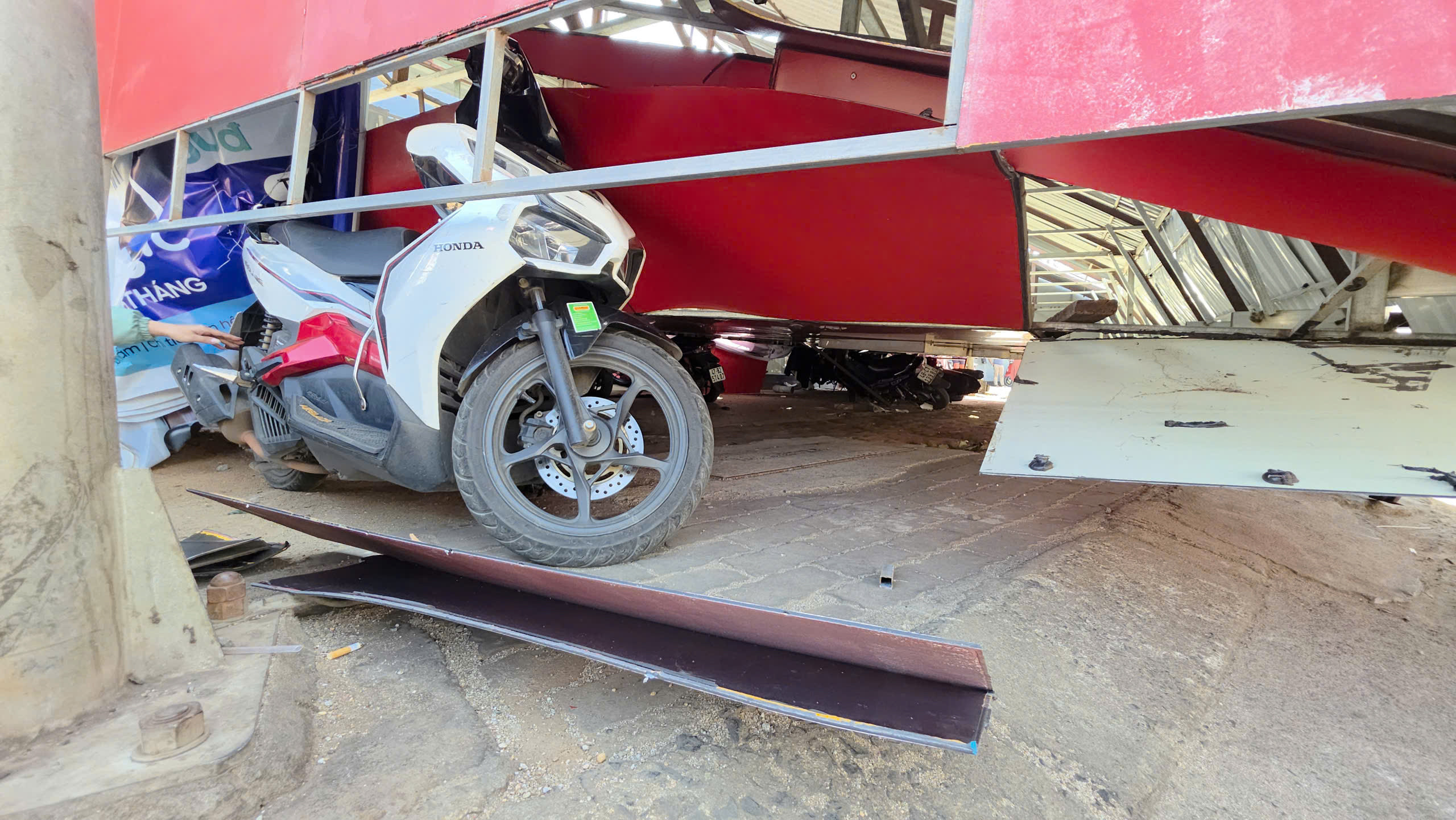 Nhiều xe máy và ô tô bị hư hỏng.