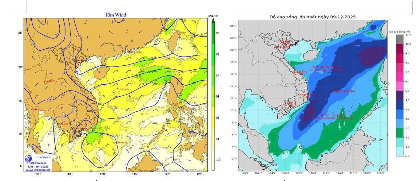 Dự báo trong 24 giờ tới (đêm 9/12 và ngày 10/12), khu vực ngoài khơi và Đặc khu Phú Quý có mưa rào và dông rải rác. Gió Đông Bắc cấp 5, cấp 6, giật cấp 7, biển động mạnh. Độ cao sóng dao động từ 2 - 4m; cần đề phòng lốc, sét và gió giật mạnh trong cơn dông.