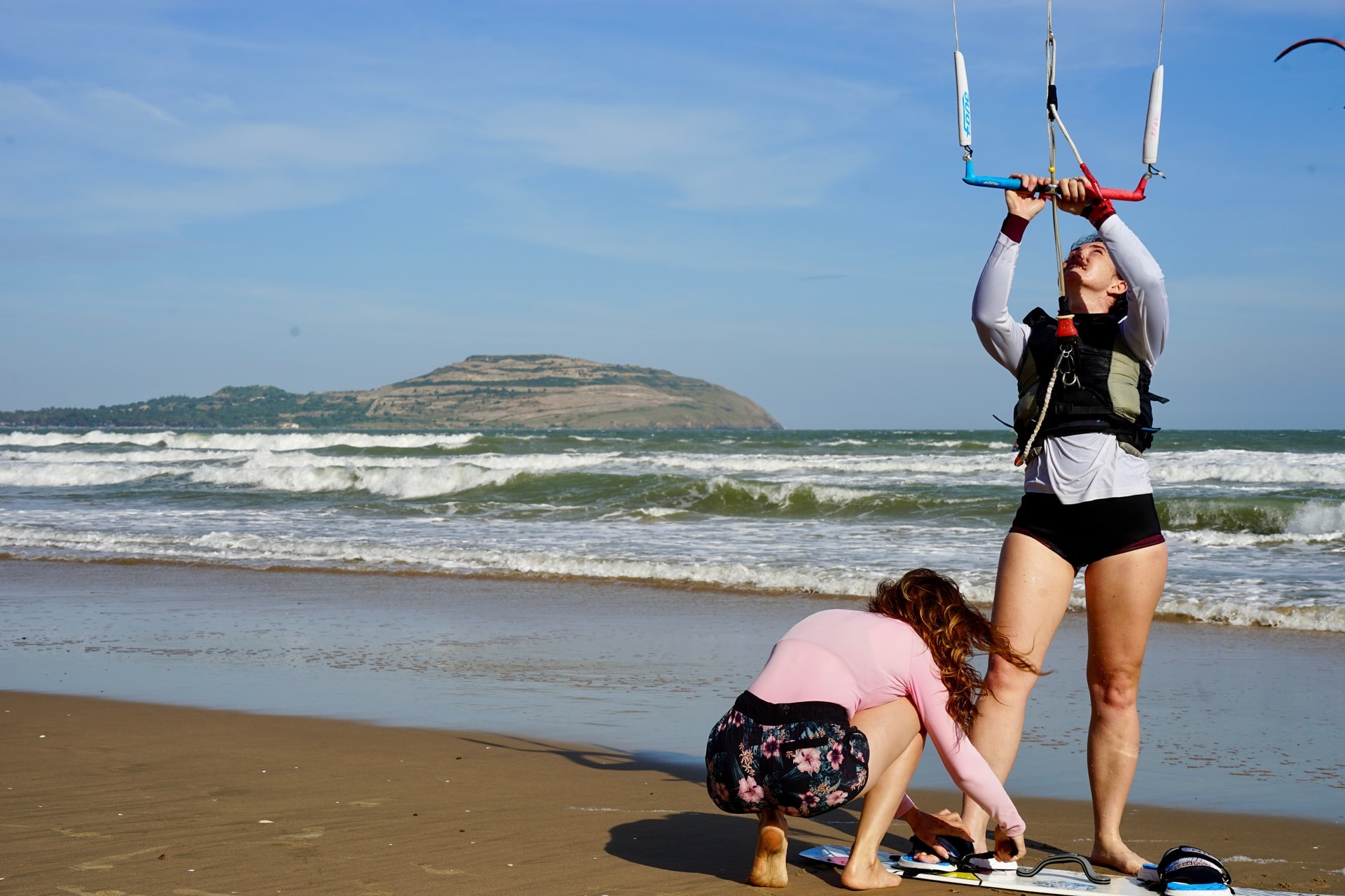 Với đam mê bất tận các du khách nữ rất phấn khích với lướt ván diều