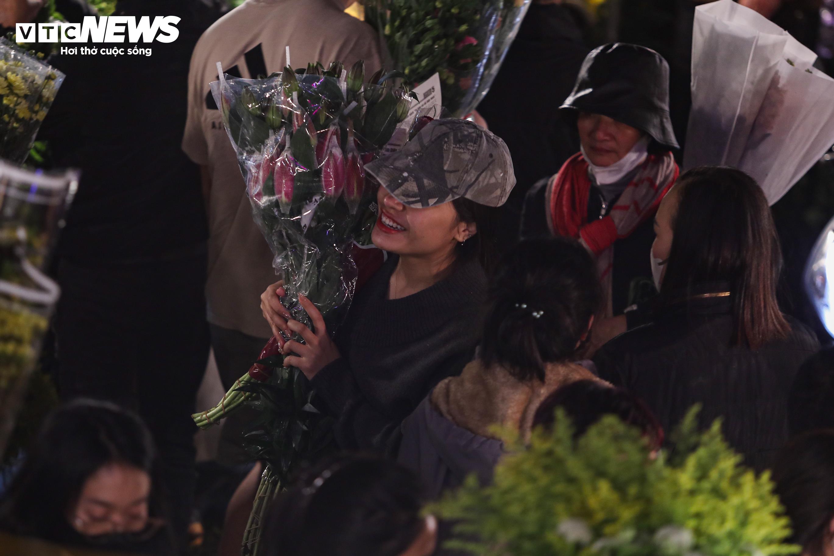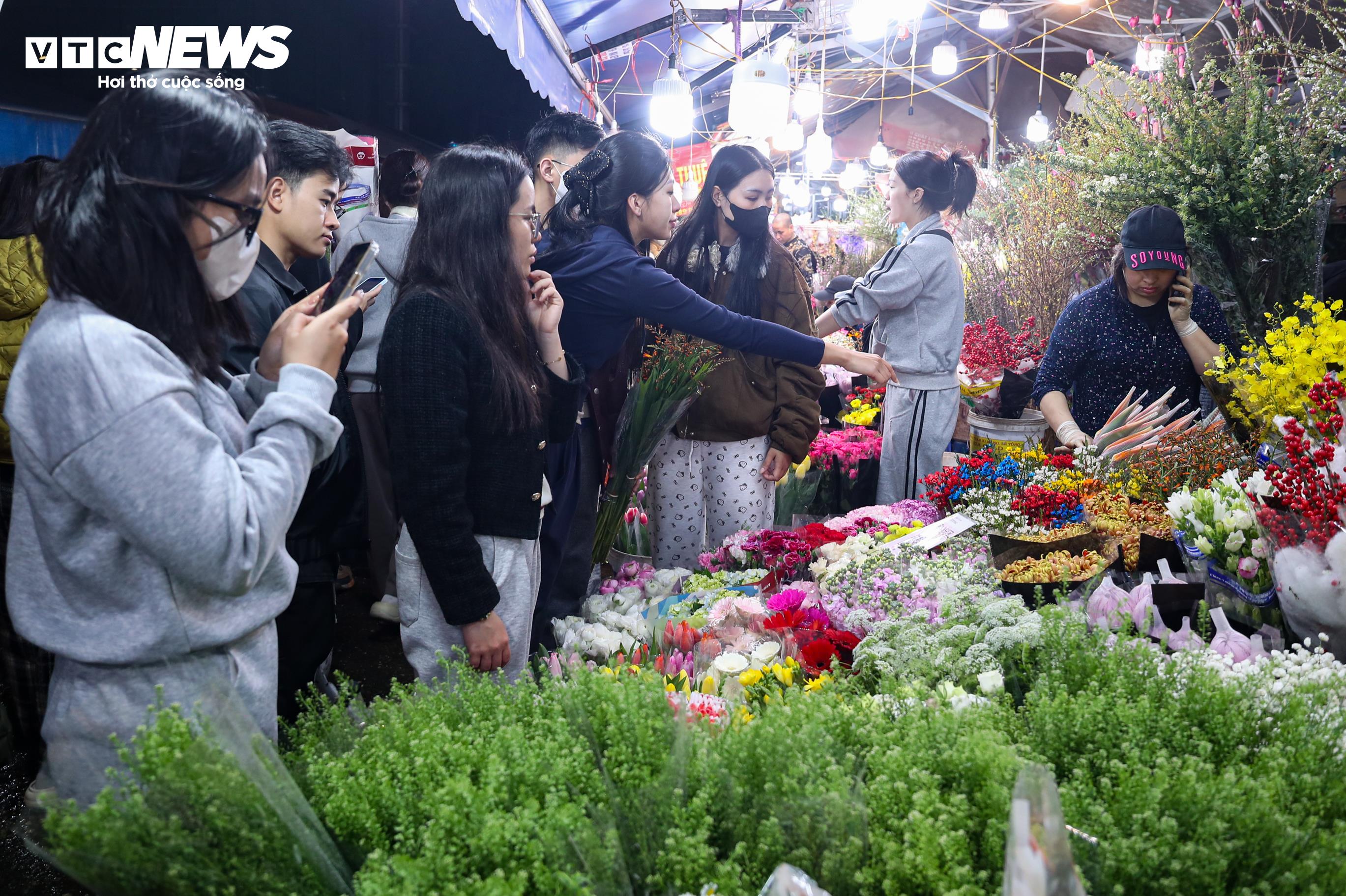 Các quầy hoa không ngớt khách ghé mua. Nhiều điểm bán đông kín, khách phải xếp hàng chờ đến lượt.