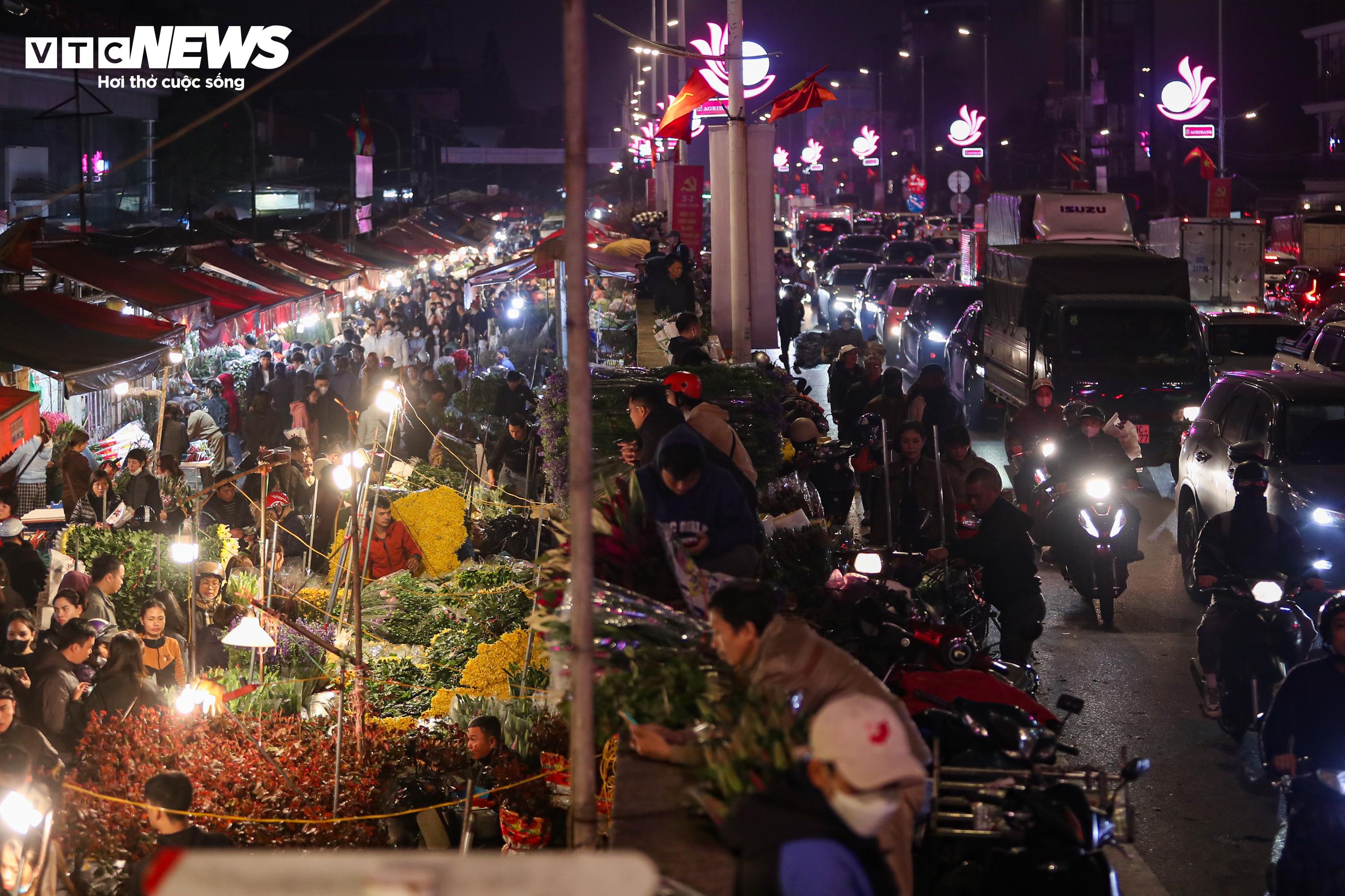 Lượng phương tiện tăng đột biến khiến giao thông khu vực trong và xung quanh chợ hoa nhiều lúc rơi vào tình trạng ùn ứ, di chuyển khó khăn kéo dài.