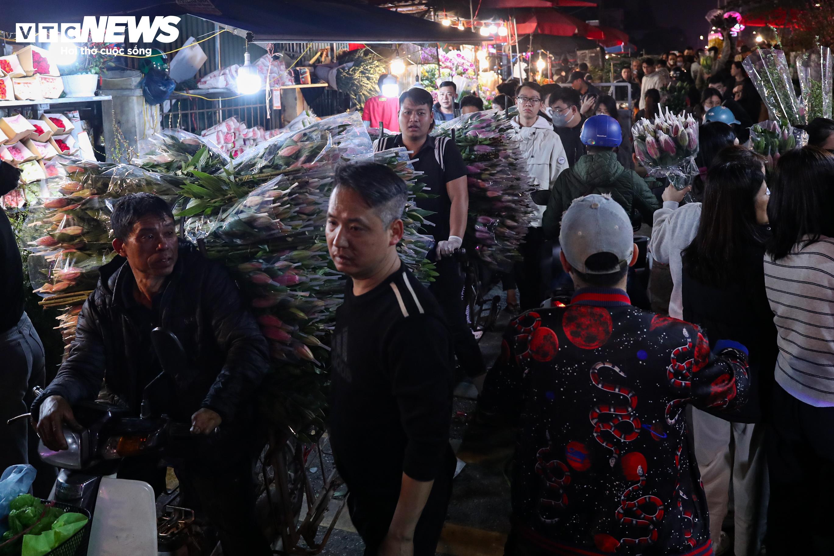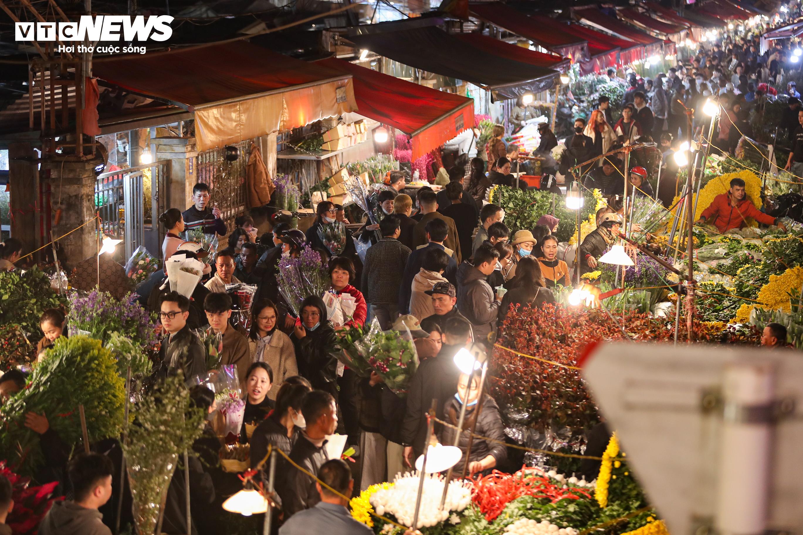 Tối 12/2 (tức 25 tháng Chạp), hàng nghìn người dân tập trung về chợ hoa Quảng An để mua sắm Tết.