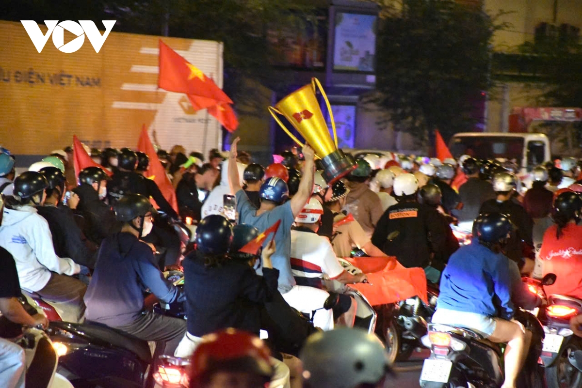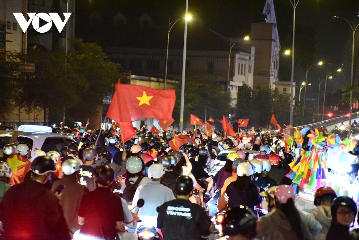 Ngay sau tiếng còi mãn cuộc, hàng loạt tuyến đường trung tâm TP.HCM như Nguyễn Huệ, Lê Lợi, Nam Kỳ Khởi Nghĩa, Điện Biên Phủ,...nhanh chóng rực đỏ màu cờ Tổ quốc. Dòng người đổ ra đường ngày một đông, tiếng hò reo, trống, kèn cổ động vang lên không ngớt, tạo nên một đêm ăn mừng cuồng nhiệt.