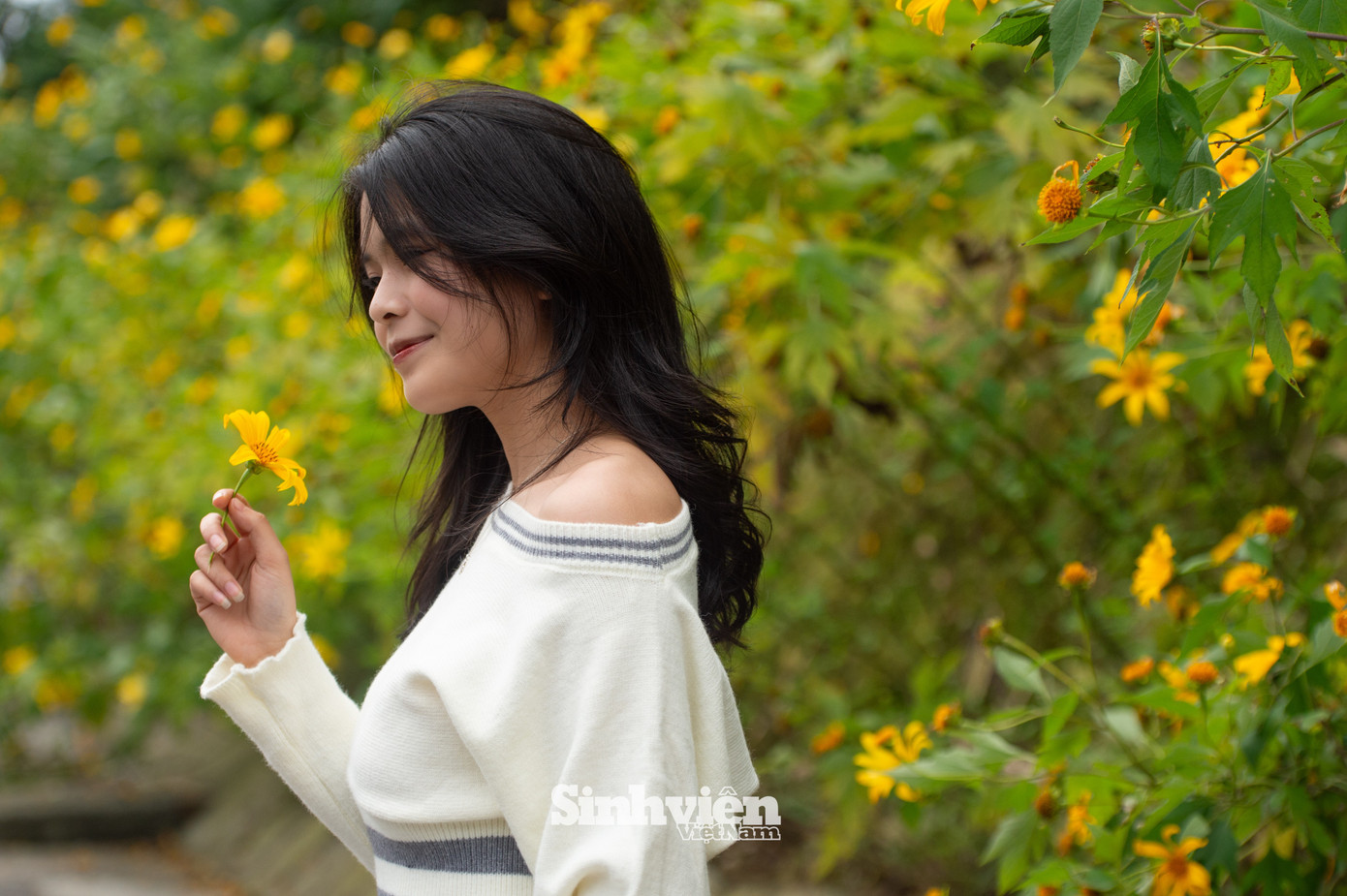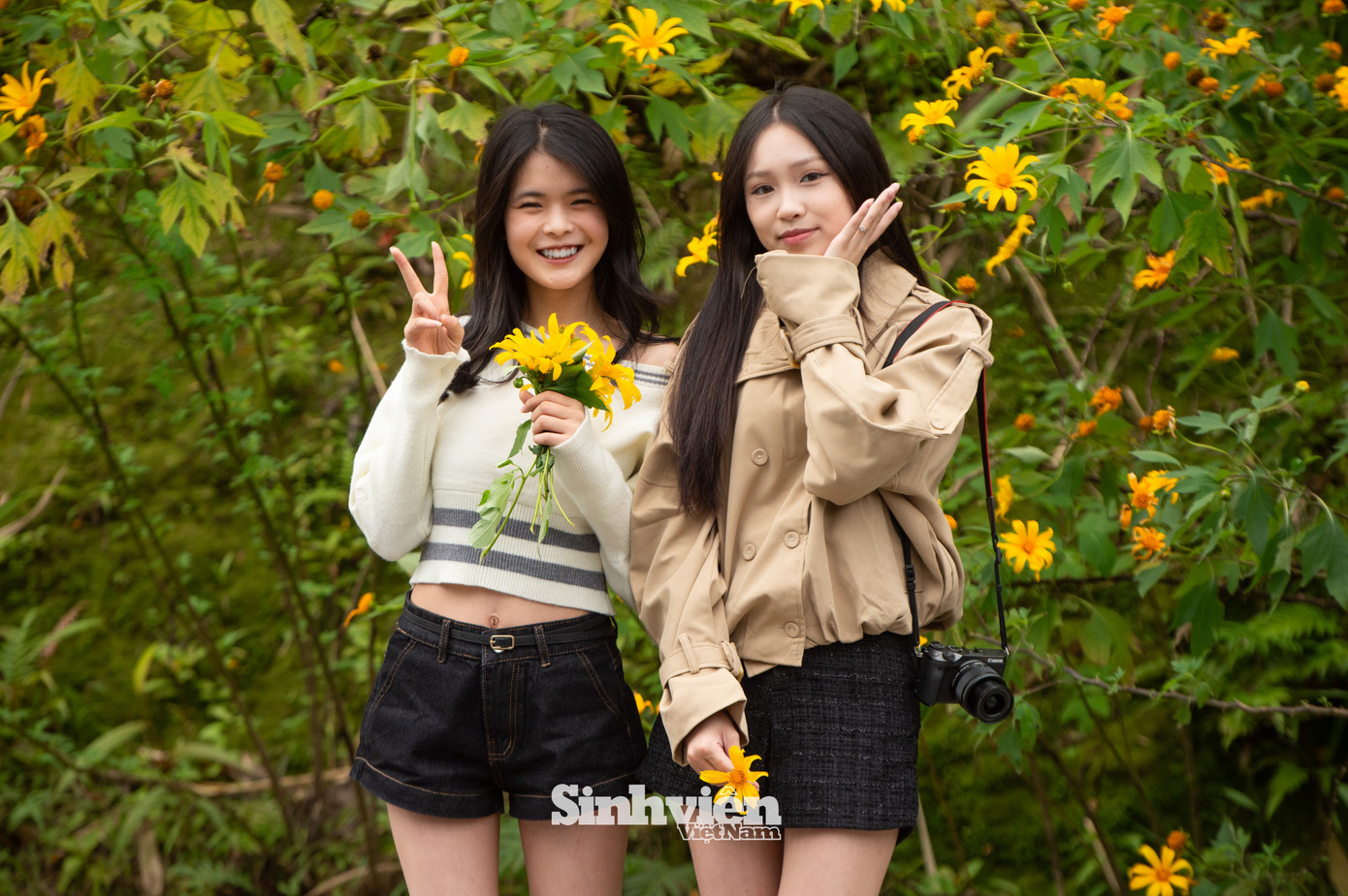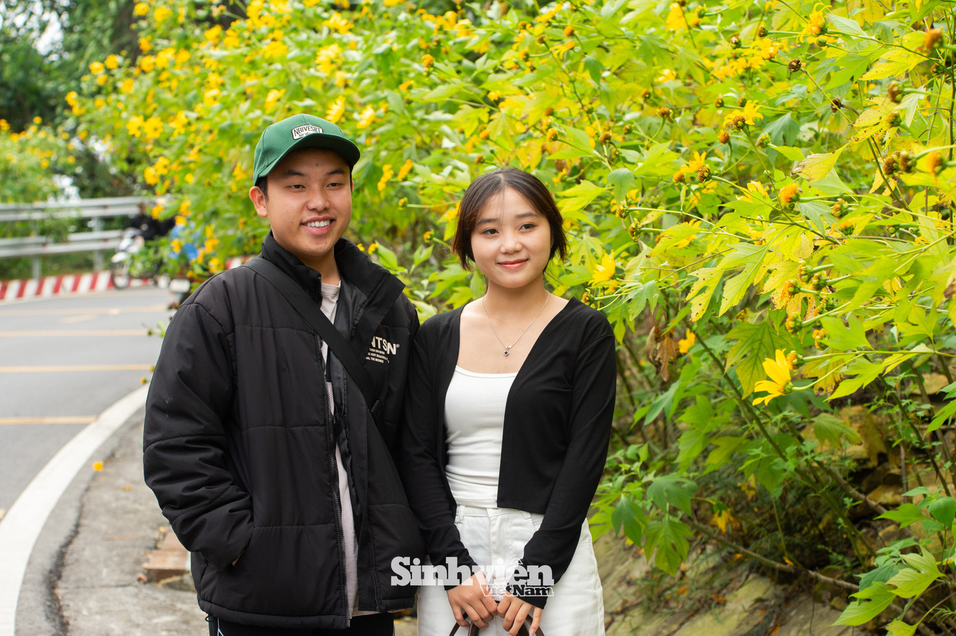 Với Ngọc Mai và Khánh (sinh năm 2006, Hà Nội), đây là lần đầu tiên các bạn "săn" hoa Dã quỳ. Có mặt từ 4 giờ sáng, Mai cho biết rất ấn tượng với cảnh tượng tại đây: "Những hàng hoa Dã quỳ nở rộ hai bên đường, không khí trong lành. Đẹp như này bảo sao rất đông các bạn trẻ lên đây vãn cảnh. Lần tới nếu có đi, mình sẽ cố gắng sắp xếp vào ngày thường để ít người hơn".