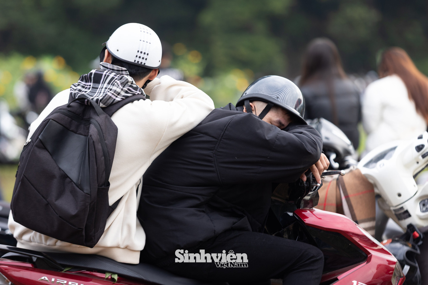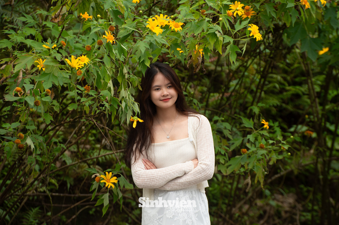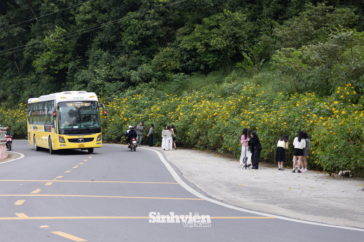Với Ngọc Mai và Khánh (sinh năm 2006, Hà Nội), đây là lần đầu tiên các bạn "săn" hoa Dã quỳ. Có mặt từ 4 giờ sáng, Mai cho biết rất ấn tượng với cảnh tượng tại đây: "Những hàng hoa Dã quỳ nở rộ hai bên đường, không khí trong lành. Đẹp như này bảo sao rất đông các bạn trẻ lên đây vãn cảnh. Lần tới nếu có đi, mình sẽ cố gắng sắp xếp vào ngày thường để ít người hơn".