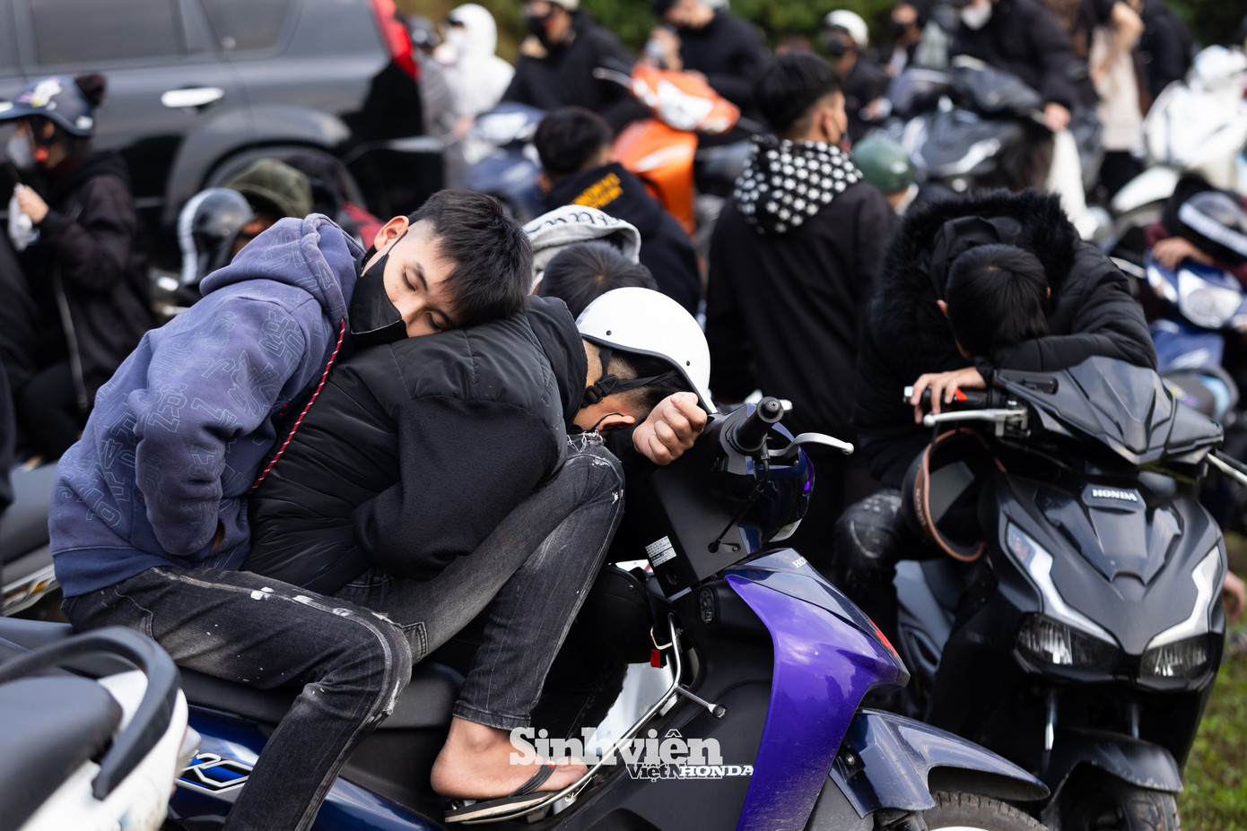 Thậm chí, do quá mệt mỏi vì xuất phát sớm và chờ đợi lâu, không ít bạn trẻ đã phải tạt vào lề đường, tranh thủ chợp mắt.