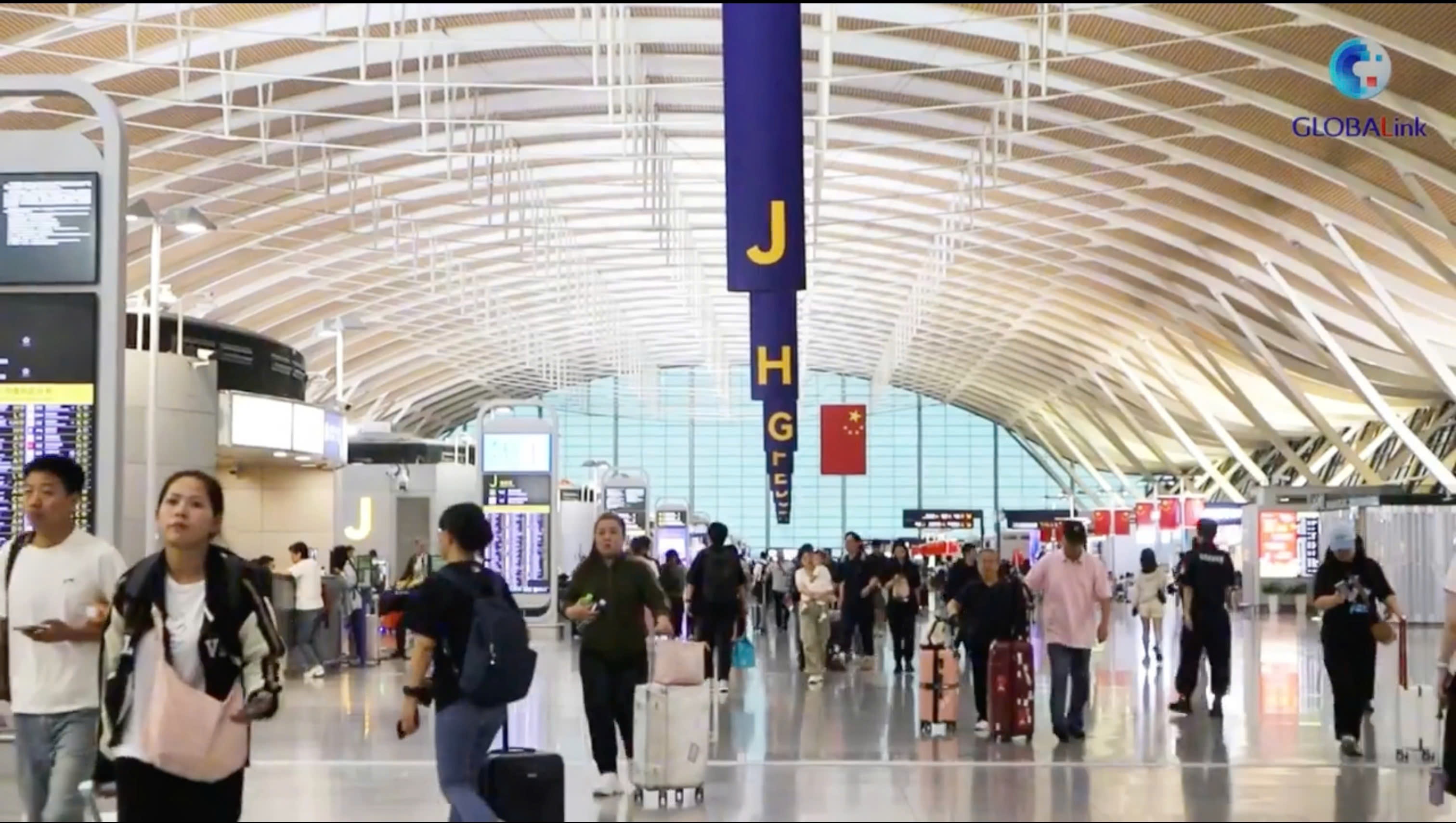 Sân bay Thượng Hải trong những ngày người dân Trung Quốc chuẩn bị bước vào kỳ nghỉ Quốc khánh - Trung thu. Theo ước tính của Cục Hàng không Dân dụng Trung Quốc, tổng số hành khách đi lại bằng máy bay trong 8 ngày lễ sẽ đạt 19,2 triệu lượt - mức cao kỷ lục, vượt xa những năm trước. Ảnh: Globalink.