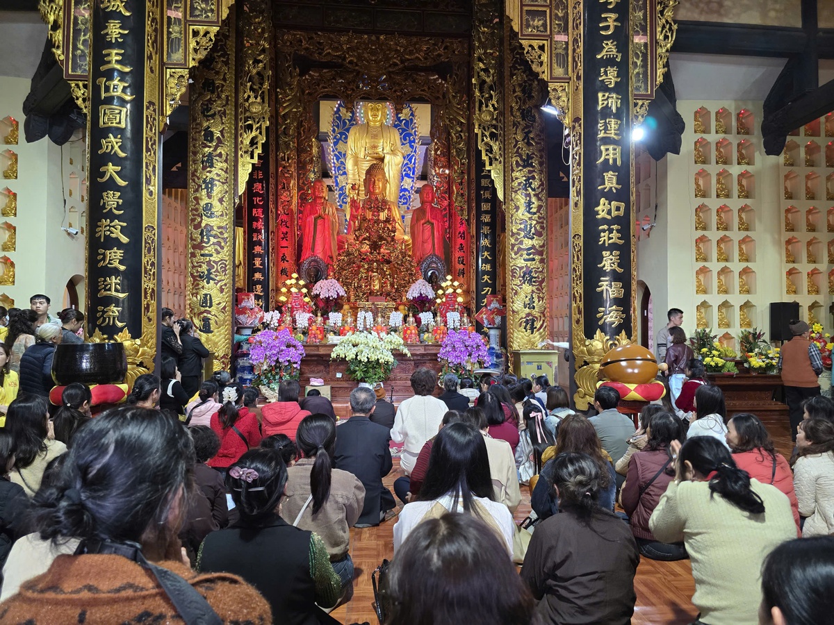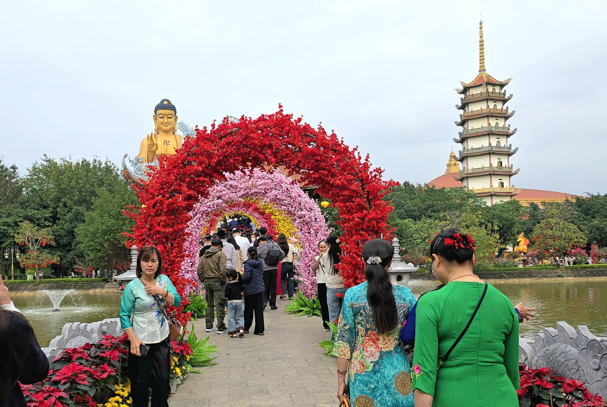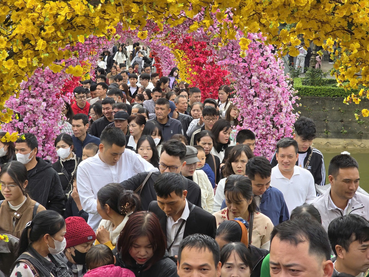Đông đảo người dân và du khách đổ về chùa Khai Nguyên trong ngày mùng 4 Tết để dâng hương, vãn cảnh, cầu an đầu năm.