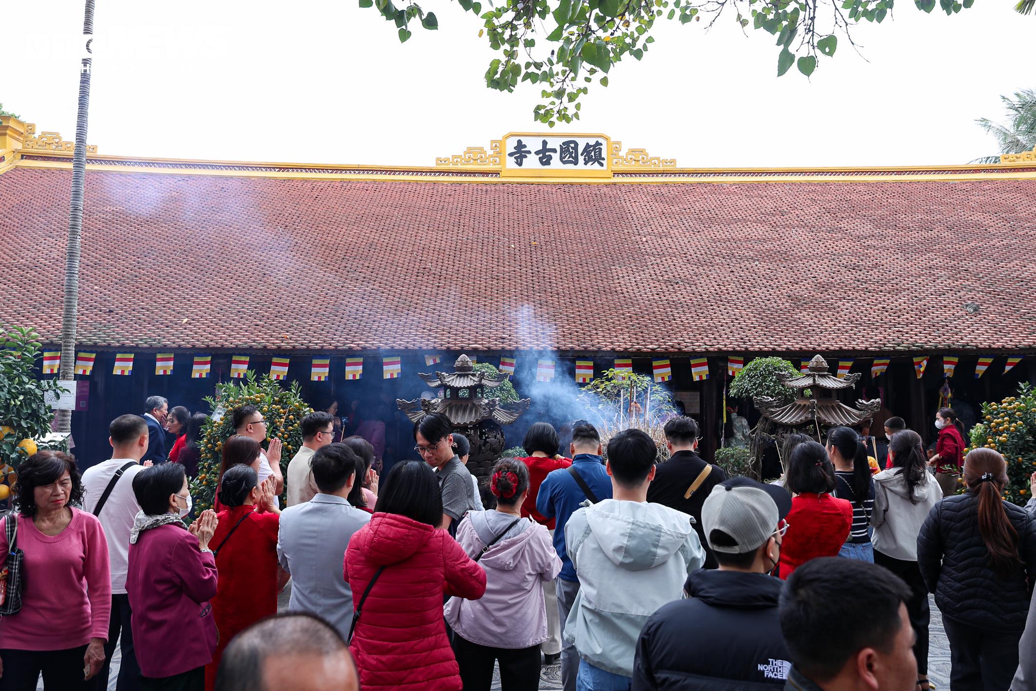 Tại chùa Trấn Quốc (quận Tây Hồ, Hà Nội), từ sáng sớm người dân và du khách đến du xuân, vãn cảnh, dâng hương lễ Phật, cầu mong bình an và xin lộc đầu năm.