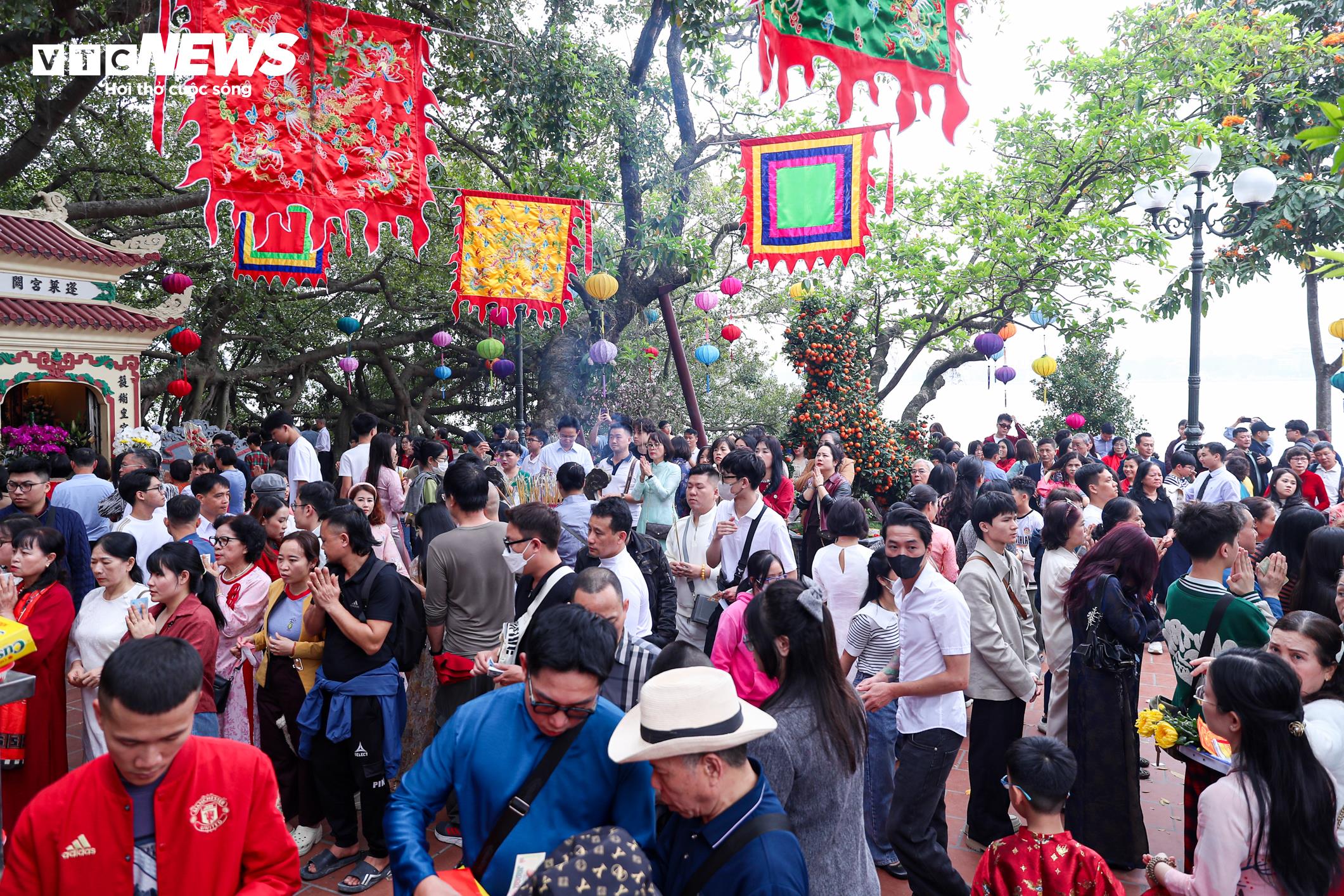 Theo ghi nhận của phóng viên Báo Điện tử VTC News, các địa điểm tâm linh nổi tiếng như chùa Trấn Quốc, phủ Tây Hồ, đền Quán Thánh… chật kín người dân.