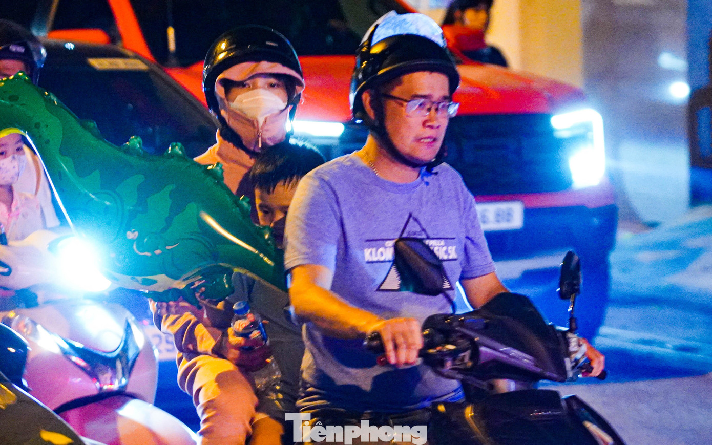 Khoảng 22h, dòng người bắt đầu rời trung tâm phố cổ, di chuyển chậm do đông đúc.