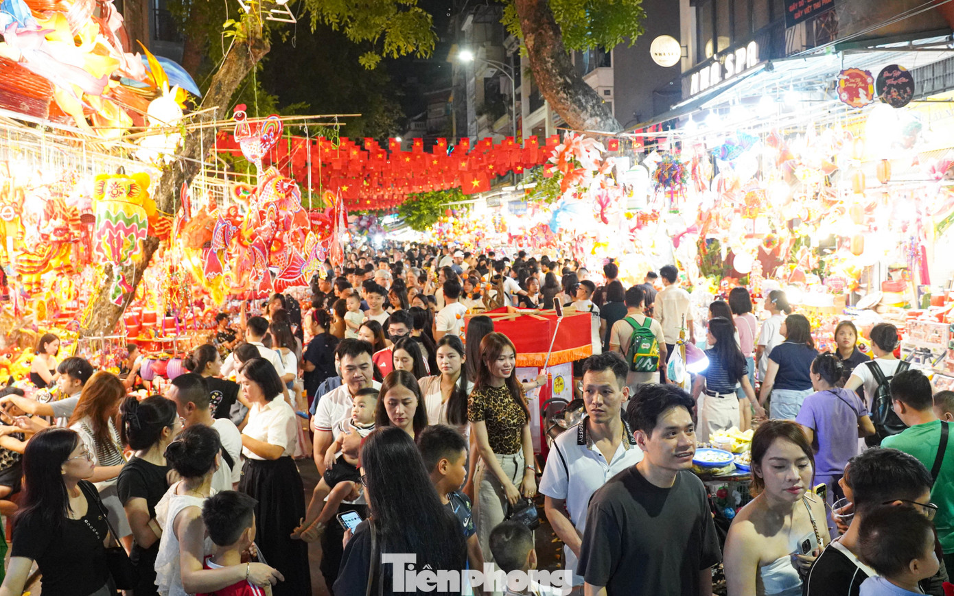 Tối 4/10, dịp cuối tuần, phố Hàng Mã và các tuyến phố lân cận đông đúc người dân, du khách đổ về dạo chơi, tận hưởng không khí Trung thu.