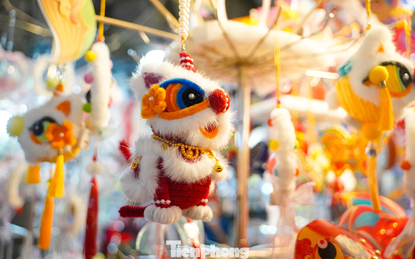 Các bạn trẻ liên tục check-in bên các gian hàng đèn và đồ chơi Trung thu rực rỡ sắc màu.